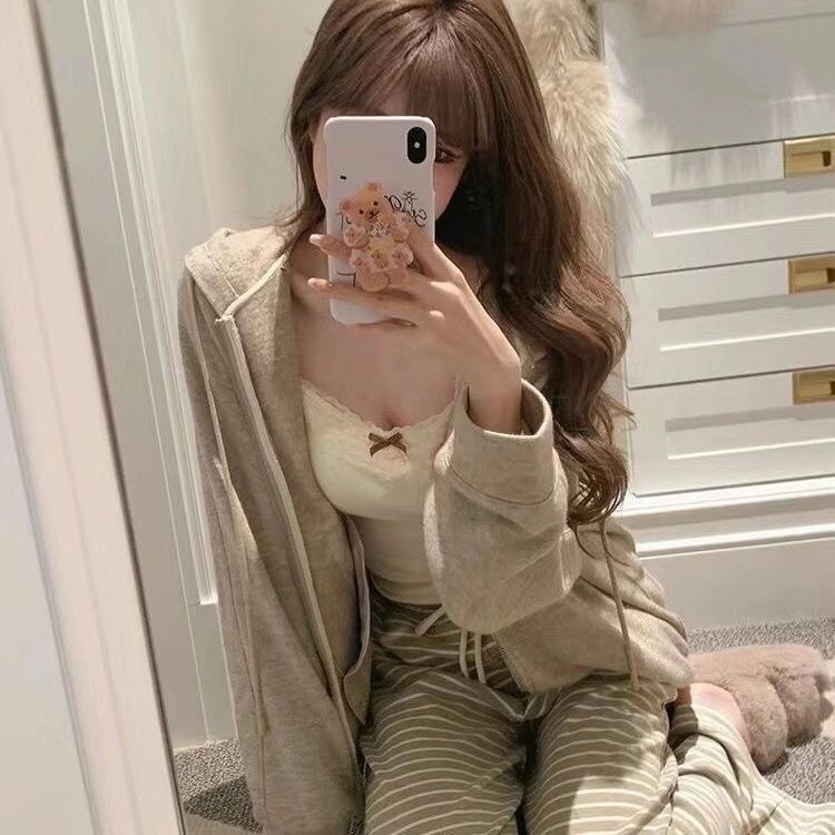 YY58 มาใหม่ เสื้อสายเดี่ยว ดีเทลลายโบว์กลางเสื้อ มินิมอลสไตล์เวียดนาม แต่งตัวง่าย มีฟองน้ำในตัว