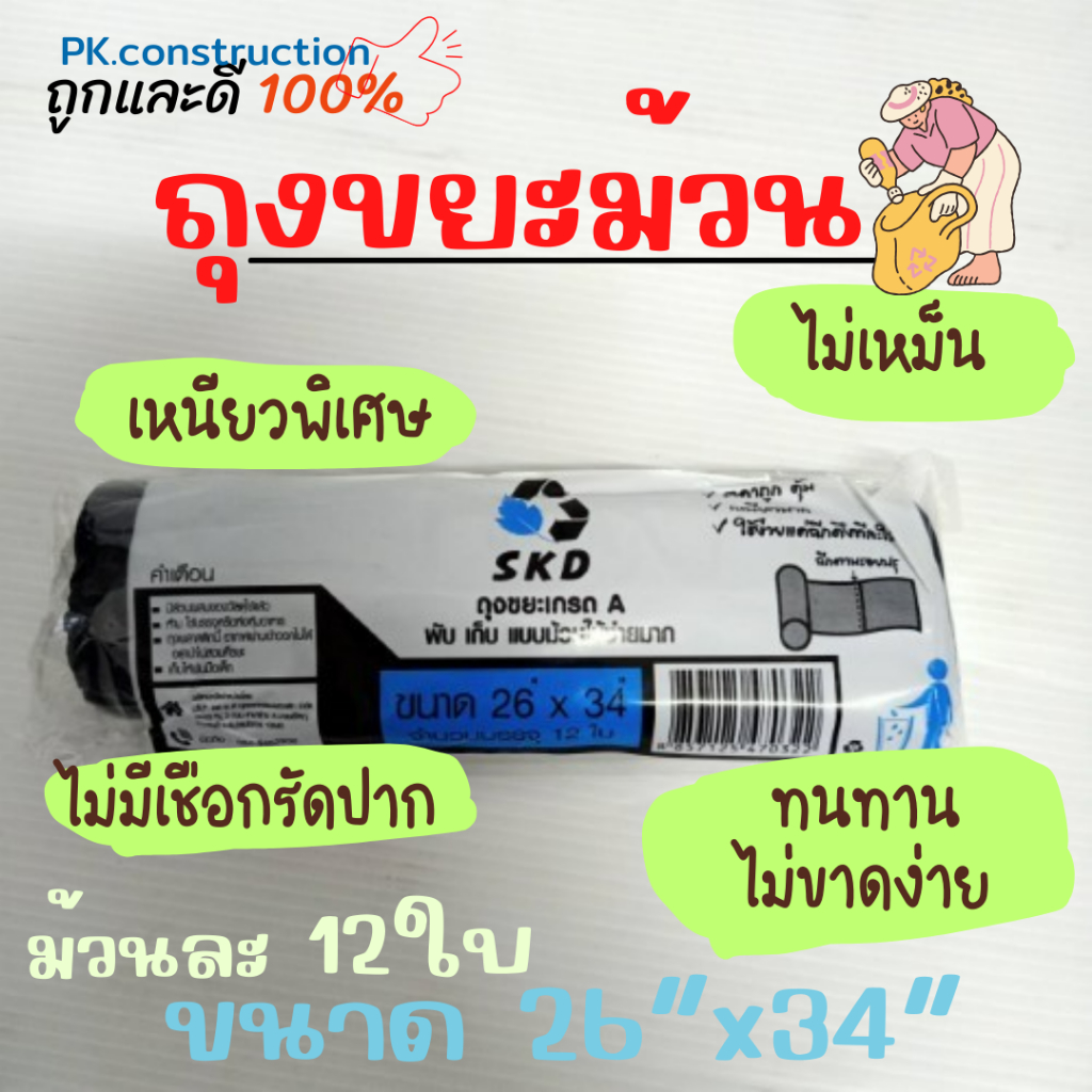 ถุงขยะSKD ม้วนหนาพิเศษ สีดำ เกรดA เหนียว ไม่มีกลิ่นฉุน ฉีกใช้ทีละใบ มีหลายขนาดให้เลือก