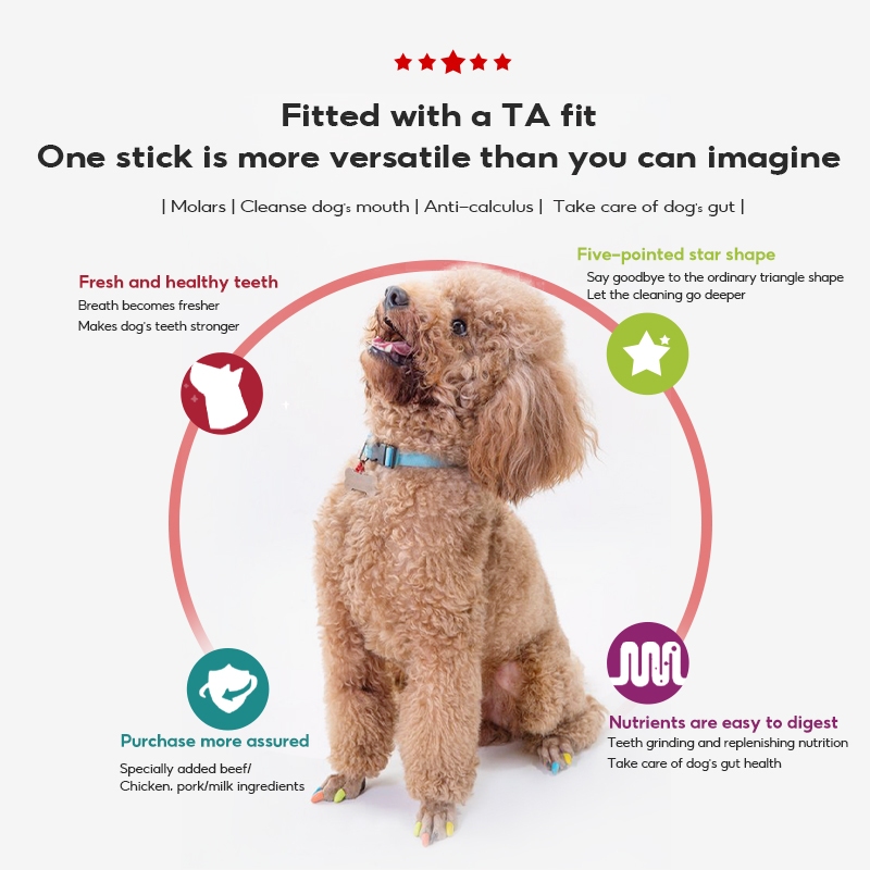 ขนมสัตว์เลี้ยง ของว่างสุนัข ของกินเล่นสุนัข การฝึกกัดเพื่อฟันสุนัข สัตว์เลี้ยงกัดฟัน 215g