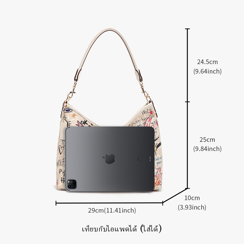 FOXER กระเป๋าสะพายข้างผู้หญิง ลายหมีน้อยกราฟฟิตีแฟชั่นความจุใหญ่ กระเป๋าโท้ทกระเป๋าช้อปปิ้ง