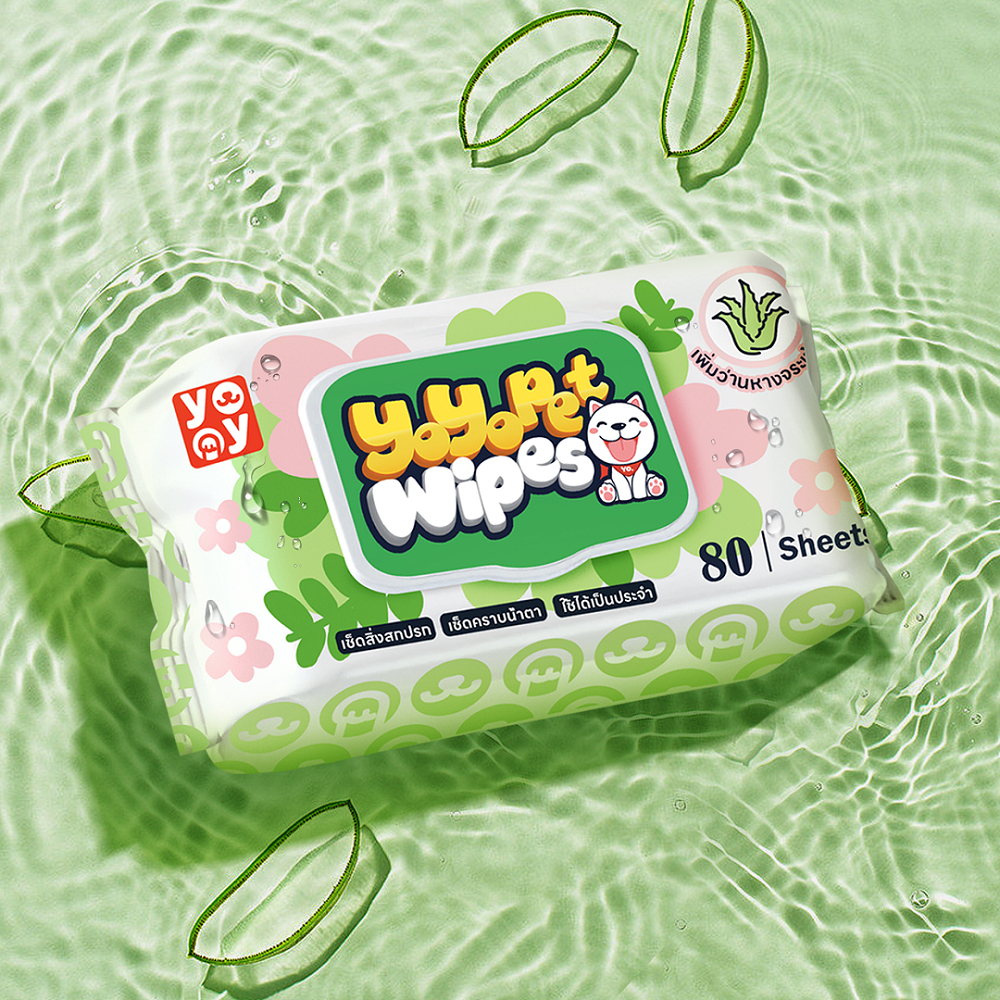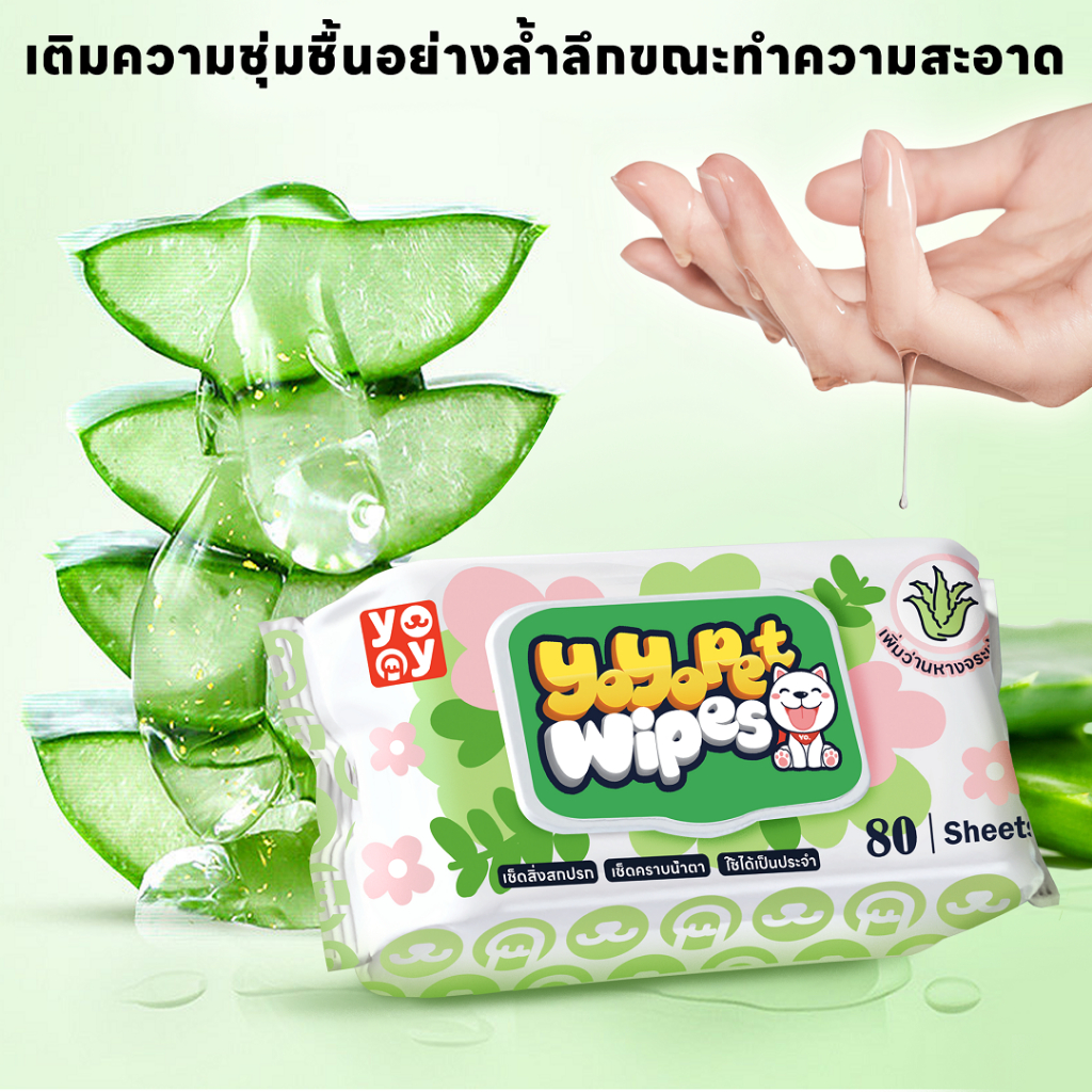yoyopet : Aloe Vera Pet Wipesทิชชู่เปียกสำหรับสัตว์เลี้ยง กลิ่นว่านหางจระเข้ เพิ่มความชุ่มชื้น