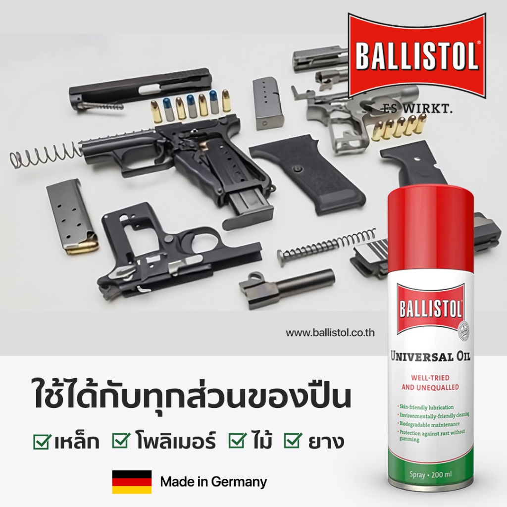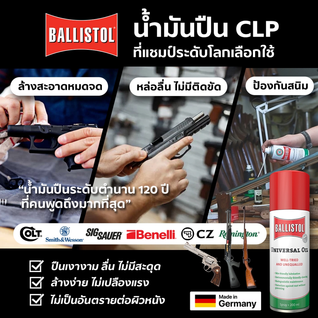 Ballistol น้ำมันล้างปืน CLP จากเยอรมัน 1 กระป๋อง (200 ml.) ของแท้ อันดับ 1 ที่แชมป์ระดับโลกเลือกใช้ ล้างเร็ว ง่าย ครบจบ