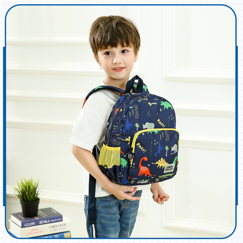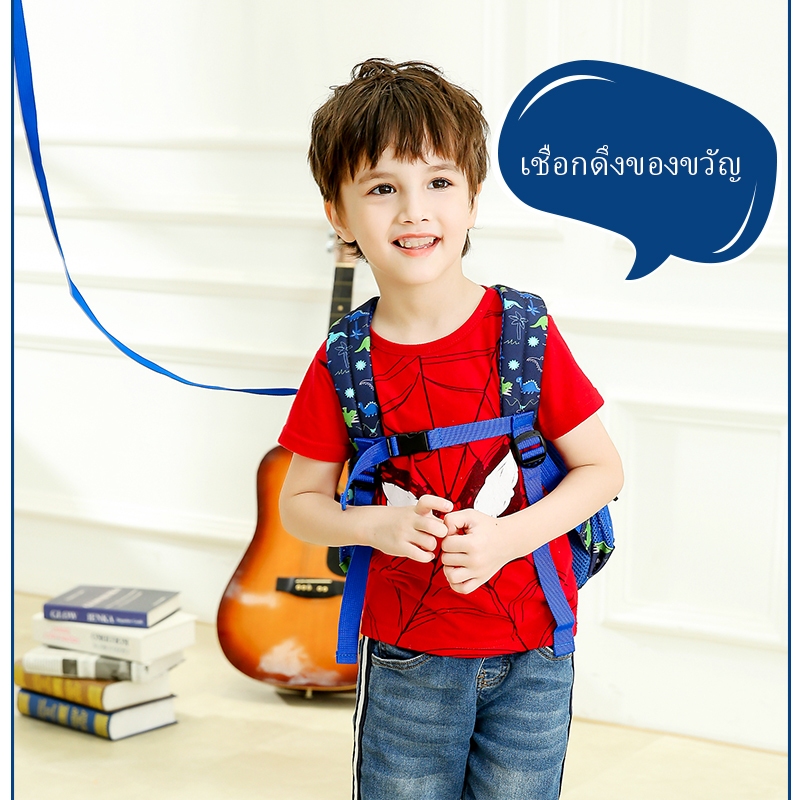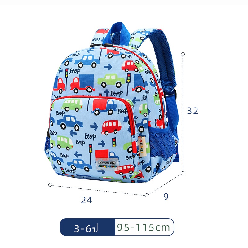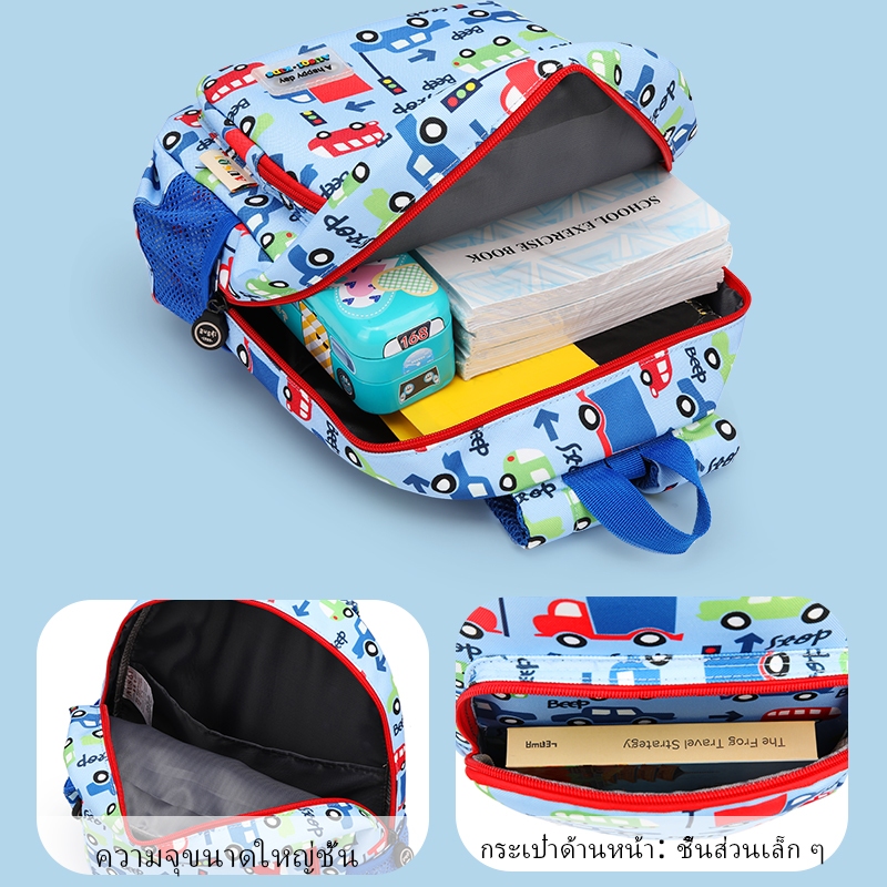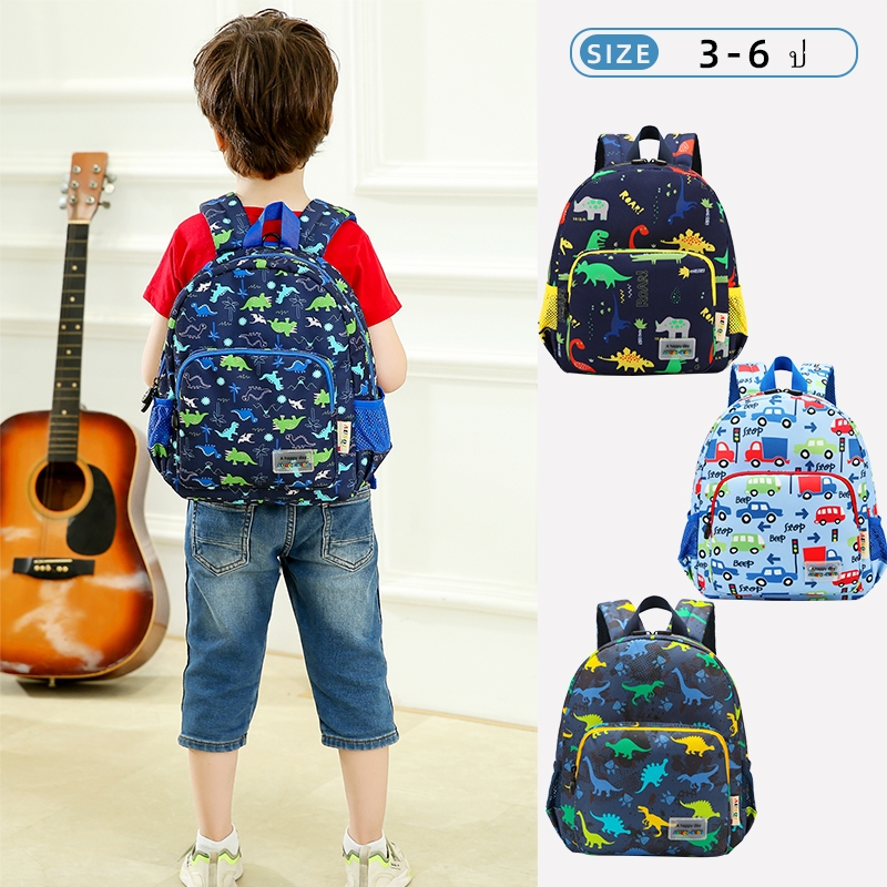 กระเป๋านักเรียนเด็กอนุบาล โพลีเอสเตอร์ ลายรถไดโนเสาร์ 3-6 ปีกระเป๋านักเ เด็กชายและเด็กหญิงอนุบาล กระเป๋าเป้สะพายหลัง ต