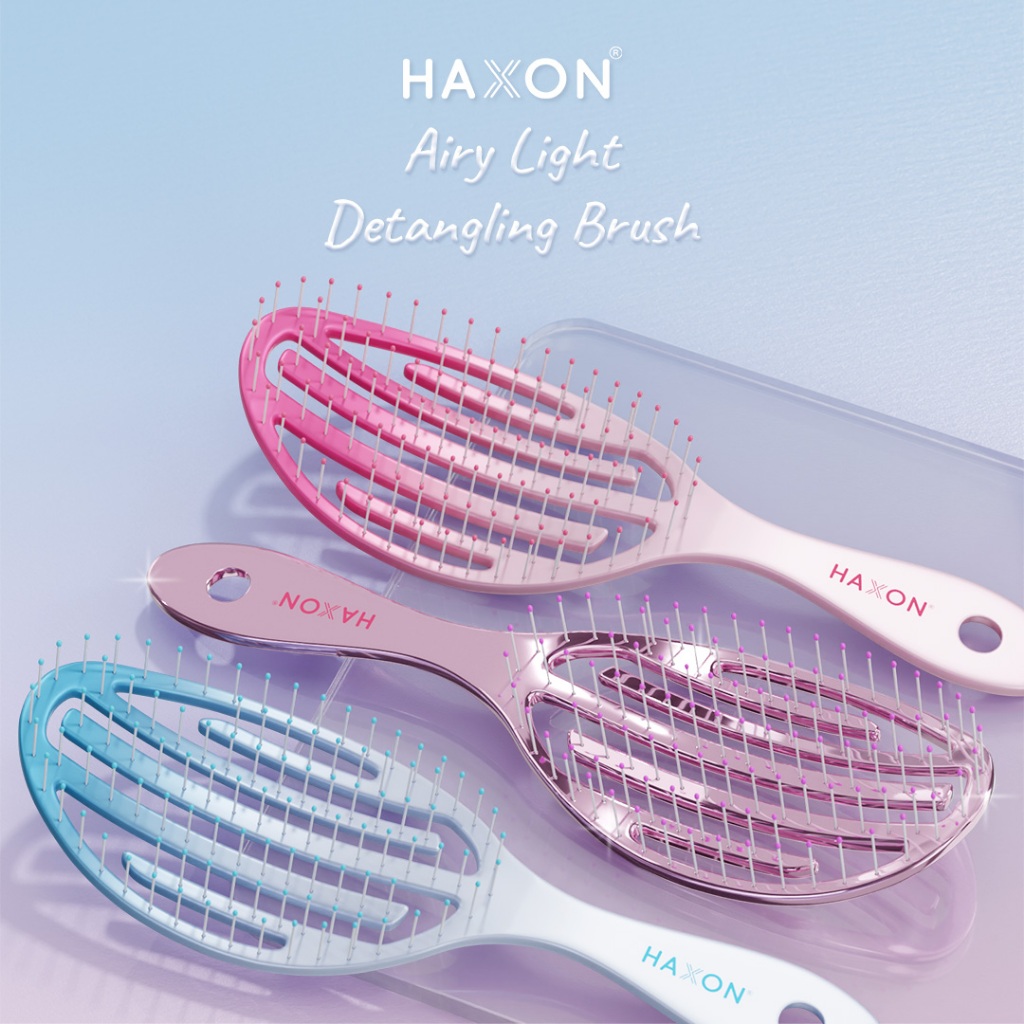 Haxon Airy Light Detangling Brush หวีแอร์รี่ หวีผมเปียกและแห้ง หวีไดร์ ทรงเว้าโค้ง ลดผมพันกัน น้ำหนักเบา