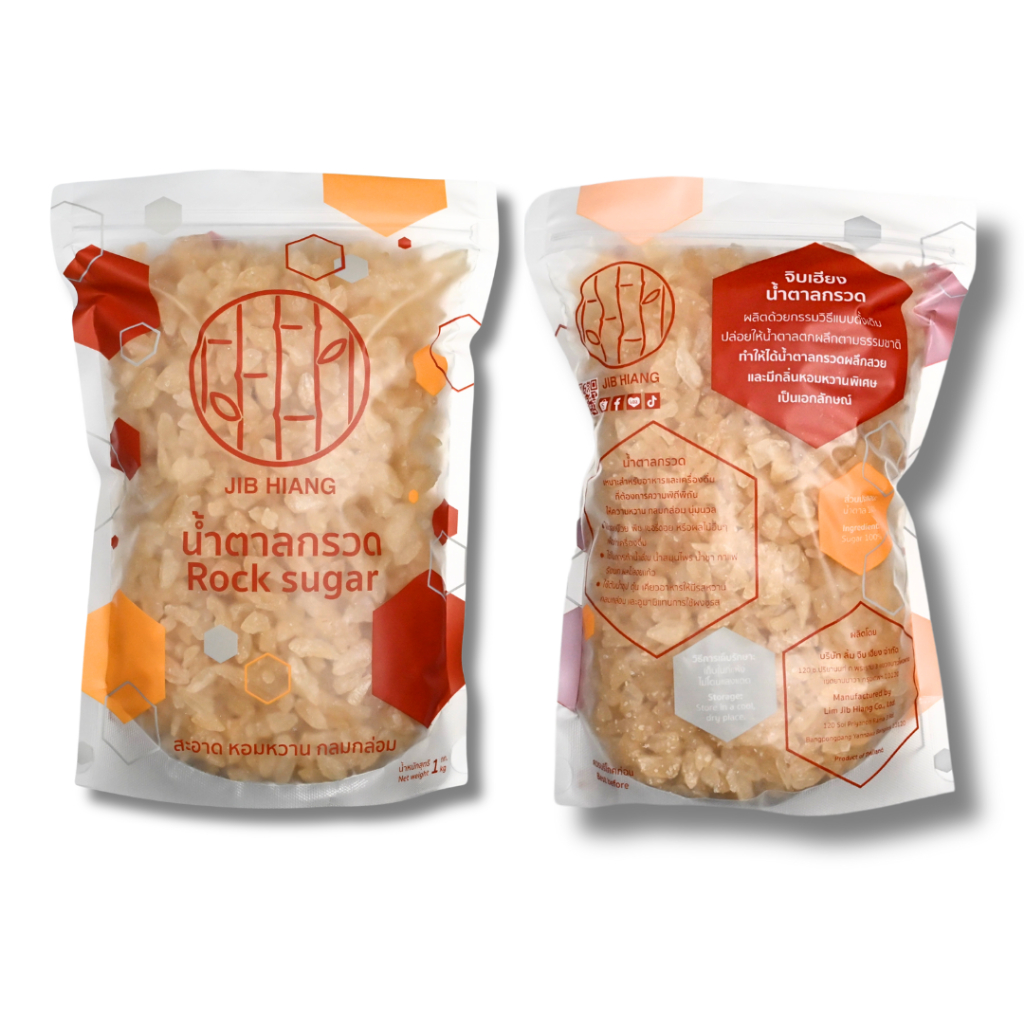 น้ำตาลกรวดสีเหลือง 1 kg ในถุงซิปล็อค โรงงานจิบเฮียง