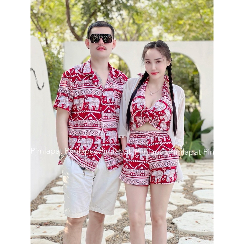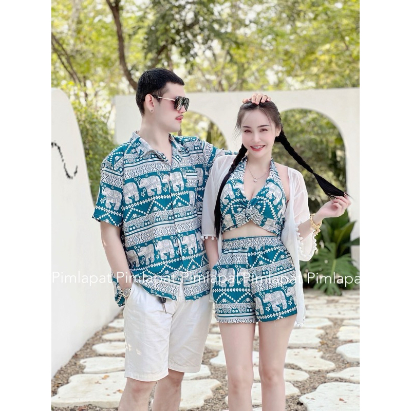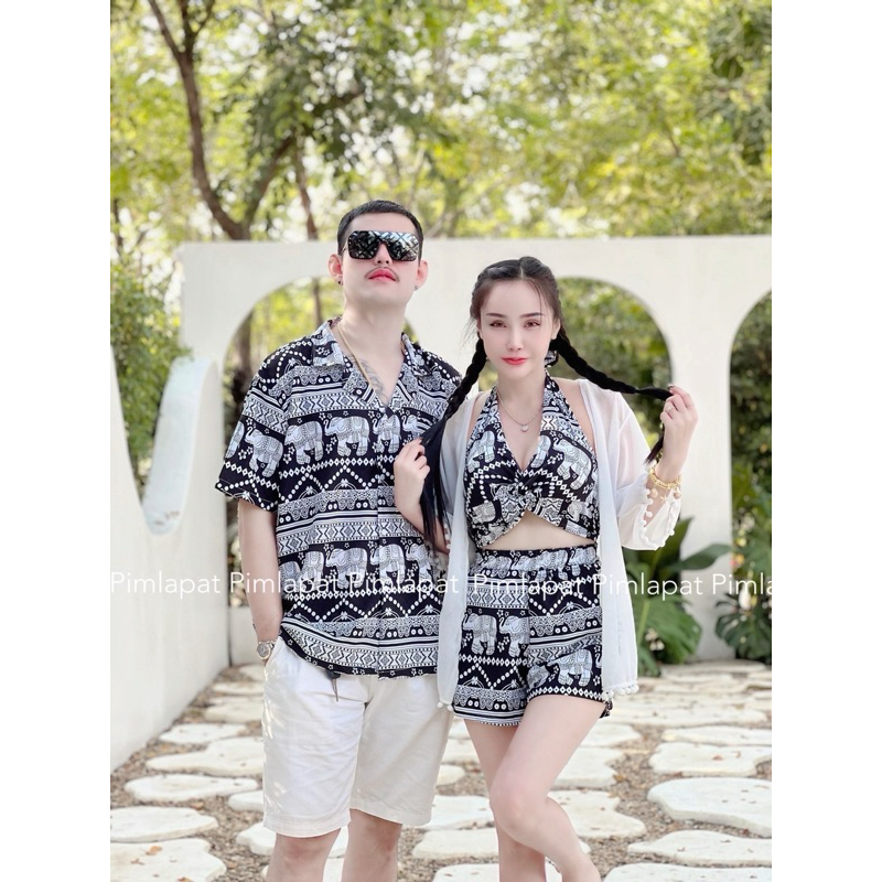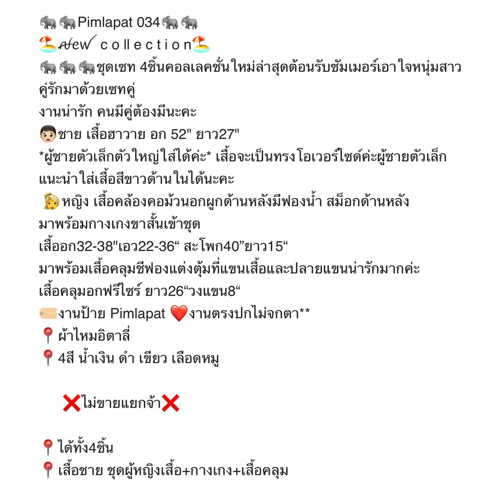 ❤️#งานป้ายPimlapat034❤️🐘ชุดคู่กับแฟนลายช้างได้ทั้ง4ชิ้น🩷เสื้อชาย+เสื้อ+กางเกงญ.+เสื้อคลุม