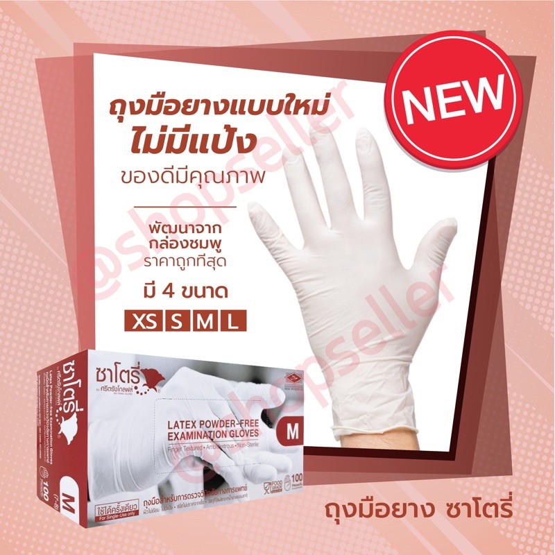 [ของแท้ ส่งไว ออกบิลได้!] ถุงมือยางสีขาว ไม่มีแป้ง ยี่ห้อซาโตรี่ กล่องน้ำตาล กล่องละ 100 ชิ้น