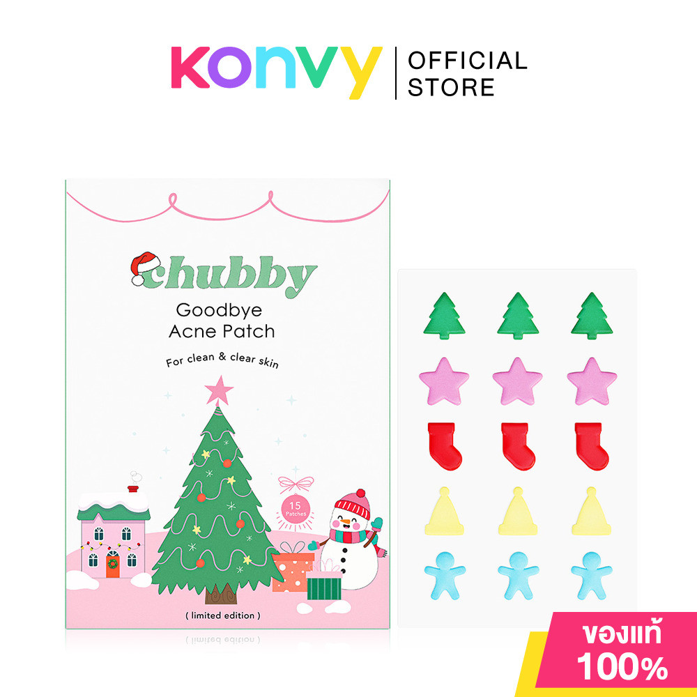 Chubby Goodbye Acne Patch ชับบี้ แผ่นแปะซับสิวสูตรไฮโดรคอลลอยด์ 15 Dots (Flower/Daisy & Ribbon/Heart/Christmas)