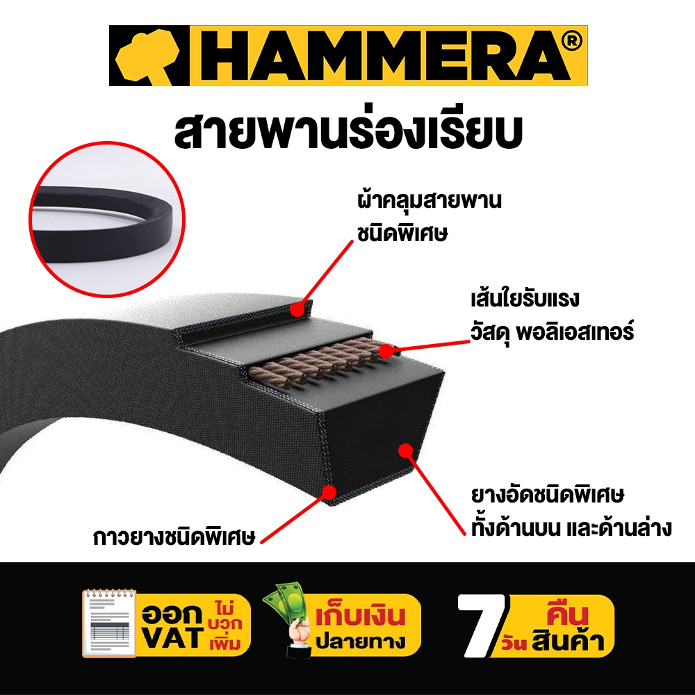 สายพาน HAMMERA ร่องA ขนาด A20 - A89 V-Belts เหนียวทนทานระดับการใช้งาน ผลิตจากยางคุณภาพ รับประกัน 7 วัน Concept N