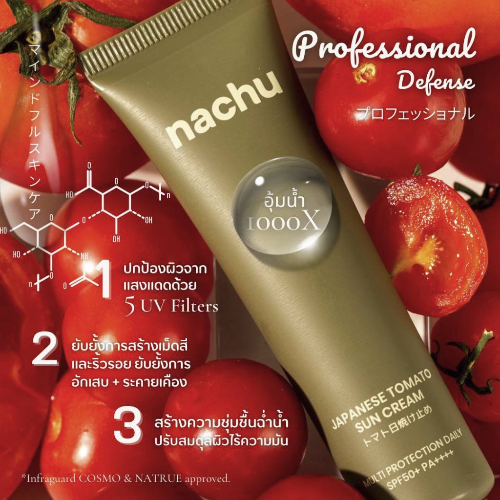 NACHU ナチュ JAPANESE TOMATO SUN CREAM แนชชู กันแดดมะเขือเทศญี่ปุ่น SPF50+ PA++++ ผิวเป็นสิใช้ได้