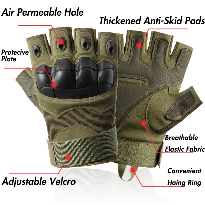 ถุงมือยาง แบบครึ่งนิ้ว แบบแข็ง สไตล์ทหาร สําหรับขี่รถจักรยานยนต์ เดินป่า ล่าสัตว์