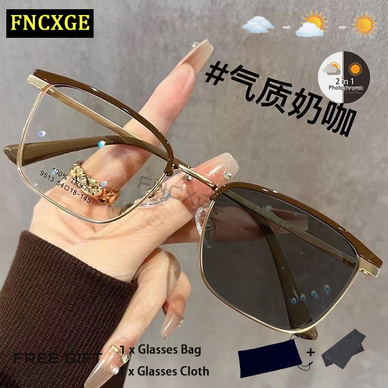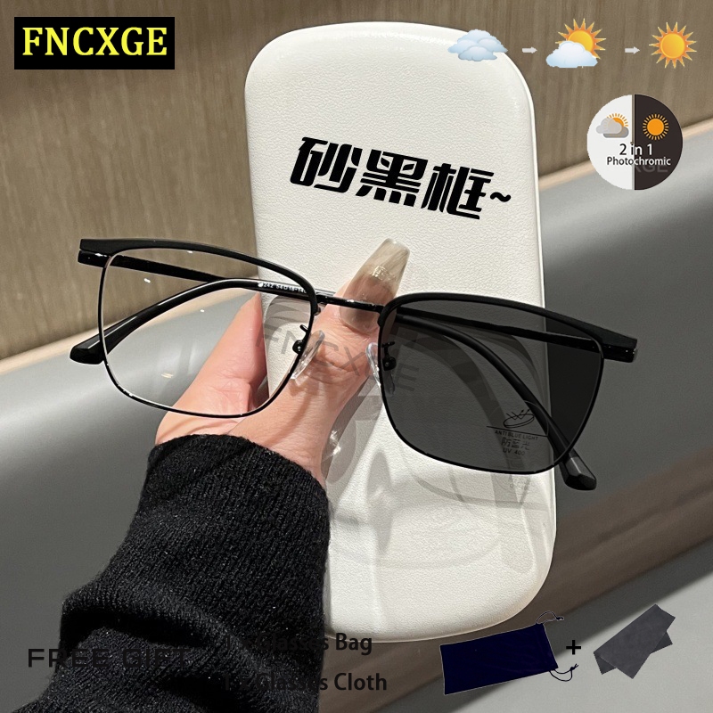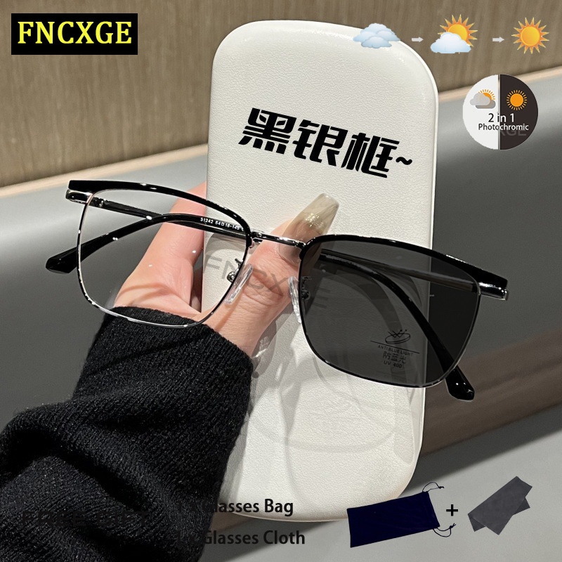 Fncxge แว่นตาสายตาสั้น กรอบครึ่ง ป้องกันแสงสีฟ้า สไตล์เกาหลี สําหรับผู้ชาย และผู้หญิง -100~-400