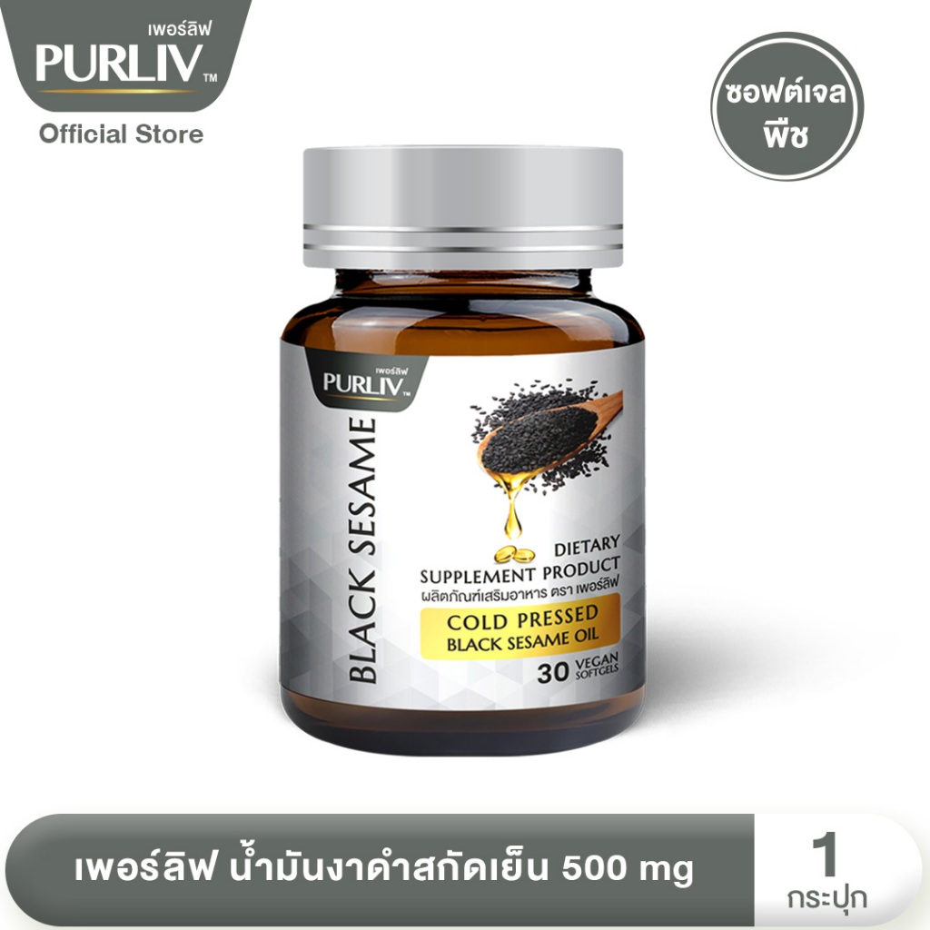 PURLIV เพอร์ลิฟ น้ำมันงาดำสกัดเย็น 1 กระปุก ผสมสารสกัดเซซามิน บำรุงข้อเข่า (กระปุกละ 30 แคปซูล)
