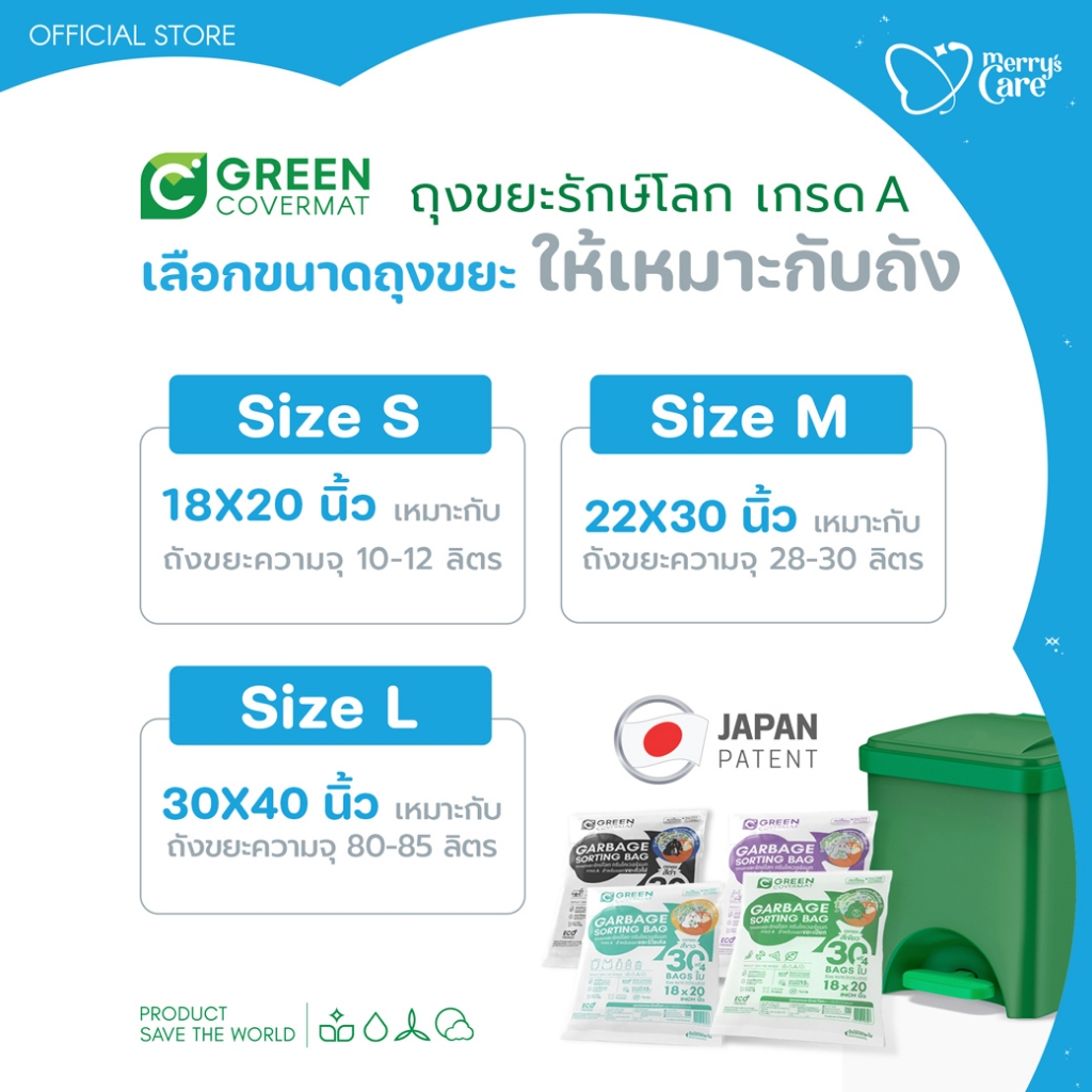 [3แถม1]Greencovermat ถุงขยะ รักษ์โลก เเยกขยะ ขยะ เกรด A สีขาว สำหรับ ขยะรีไซเคิล (Eco-Product)