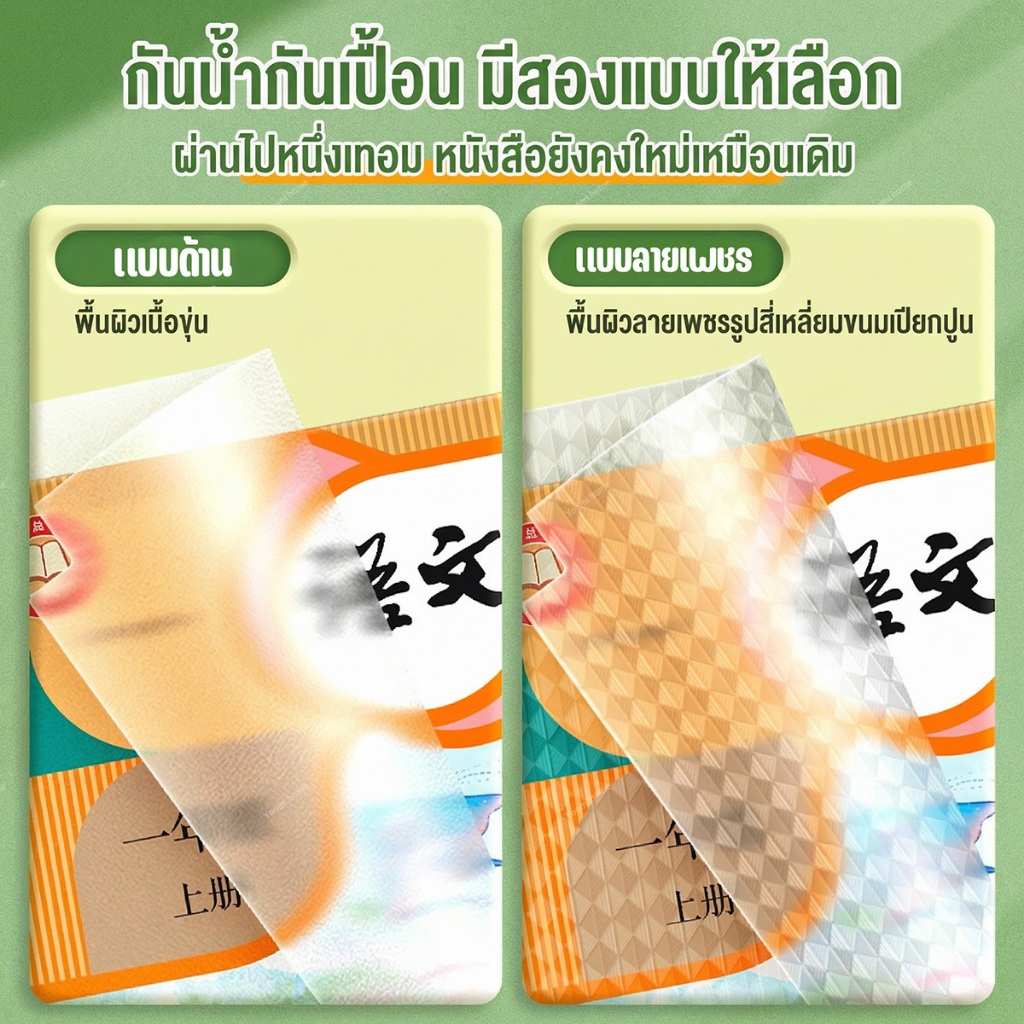 ปกห่อหนังสือ แบบมีกาวในตัว ลายเพชร ลายด้าน 3 ไซส์ กันน้ำ ไม่ยับ แปะง่าย แถมสติ๊กเกอร์ชื่อ ปกหนังสือใส เหมาะนักเรียน