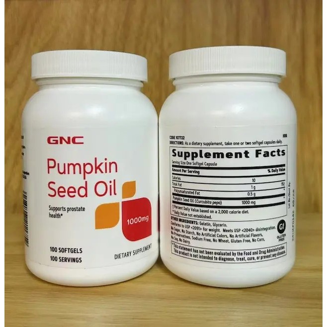 GNC Pumpkin Seed Oil 1000mg 100 softgels(EXP 2029) น้ำมันเมล็ดฟักทอง 1000มก. 100 แคปซูล (เพิ่มความมีชีวิตชีวาและพลังงาน)