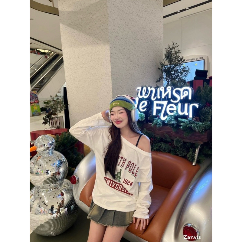 (Zanvis tee)เสื้อแขนยาวปาดไหล่สกรีนลาย
