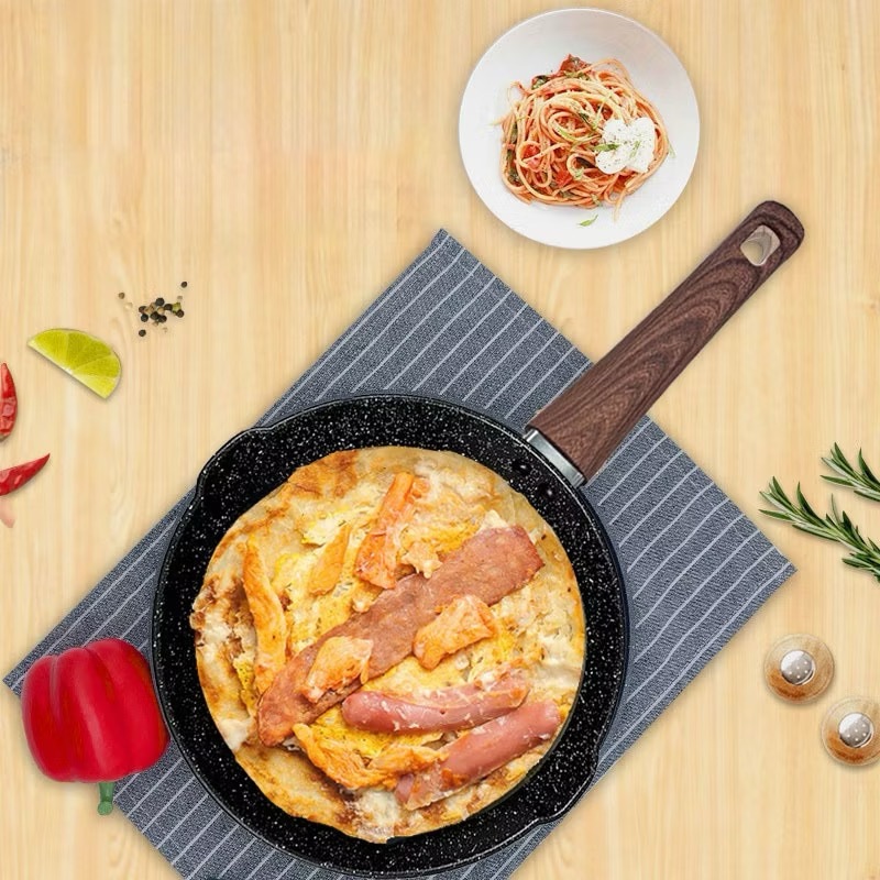 พร้อมส่ง กระทะเคลือบหินอ่อน กระทะ กระทะก้นลึก สามารถใช้เตาแม่เหล็กไฟฟ้าได้ หม้อเทฟล่อน มีด้ามจับ 16/18/20 cm.