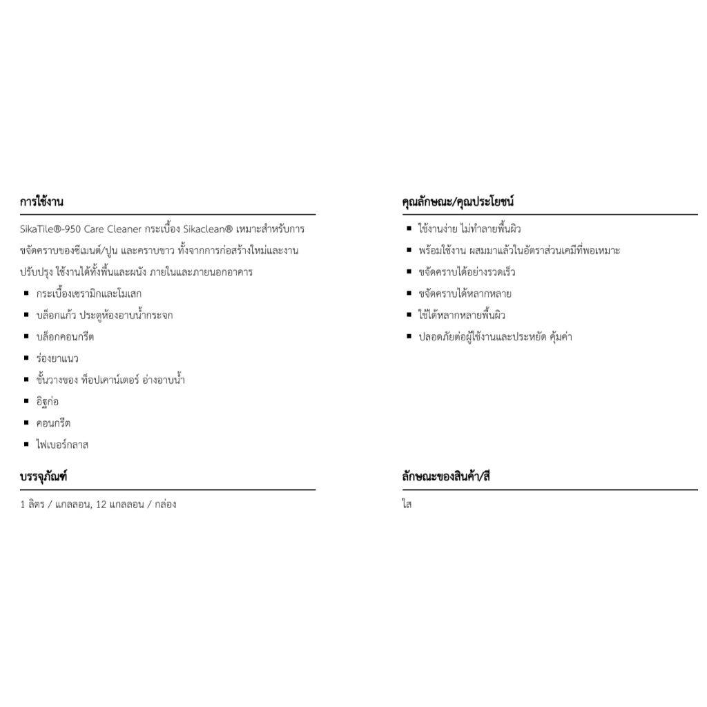 Sika น้ำยาขจัดคราบปูนซีเมนต์ 1 ลิตร รุ่น 950 น้ำยาล้างคราบ ขจัดคราบสนิม ซิก้า Care Cleaner