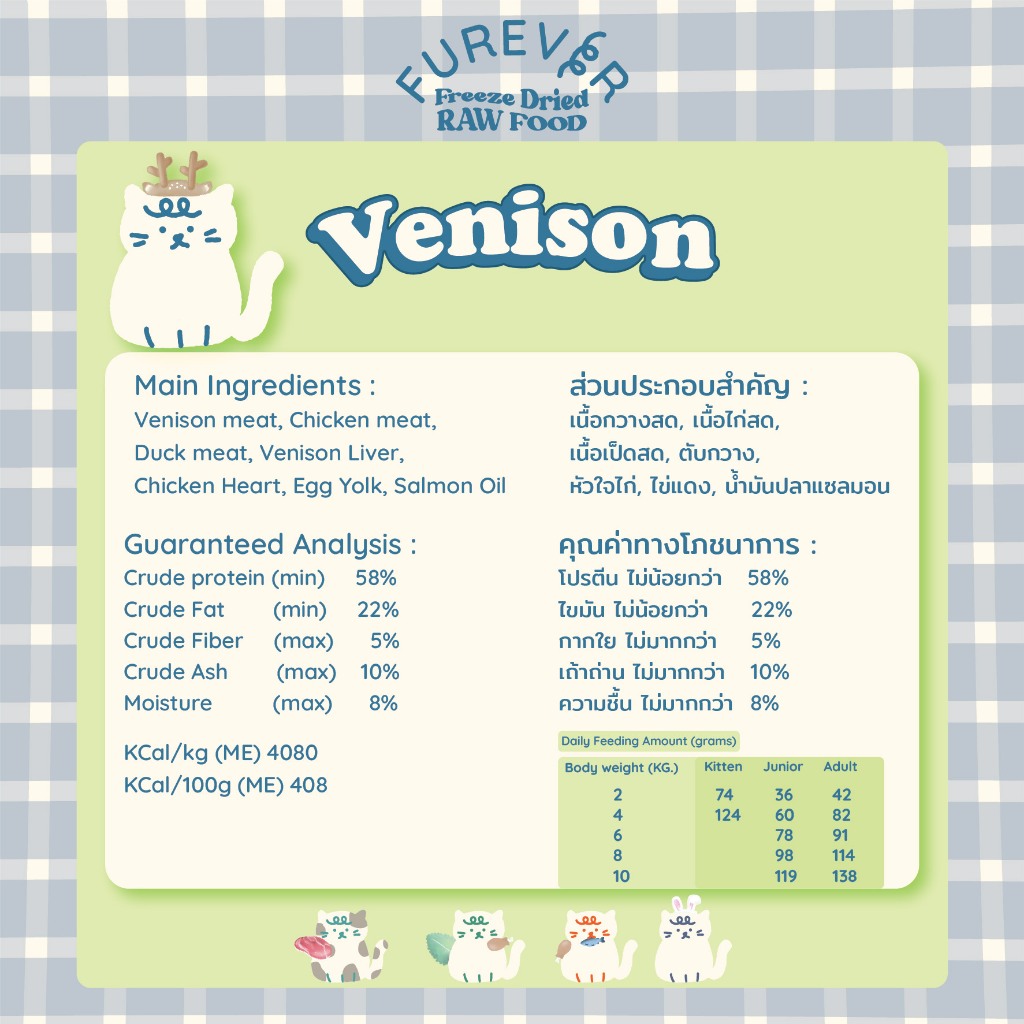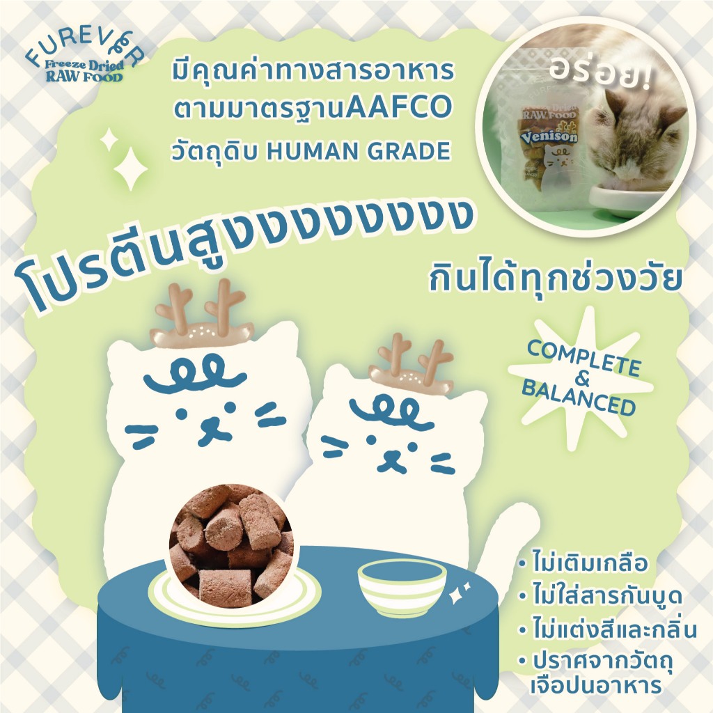 FUREVER Freeze dried Raw Food - Venison 500g ฟรีซดรายบาร์ฟ สูตรกวาง สำหรับแมว 500g