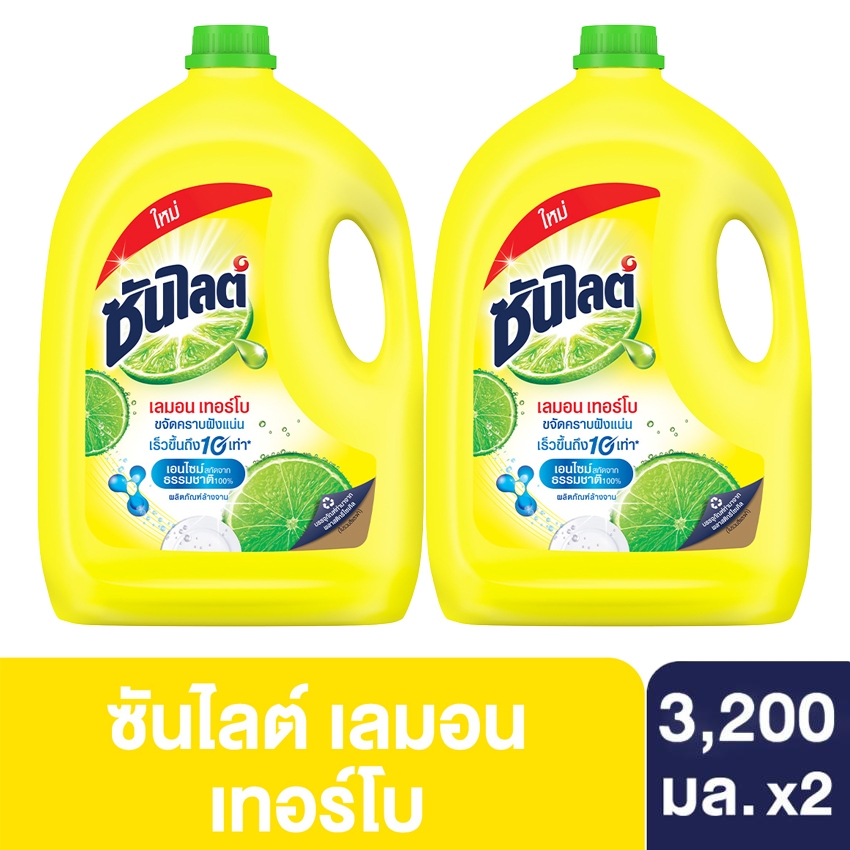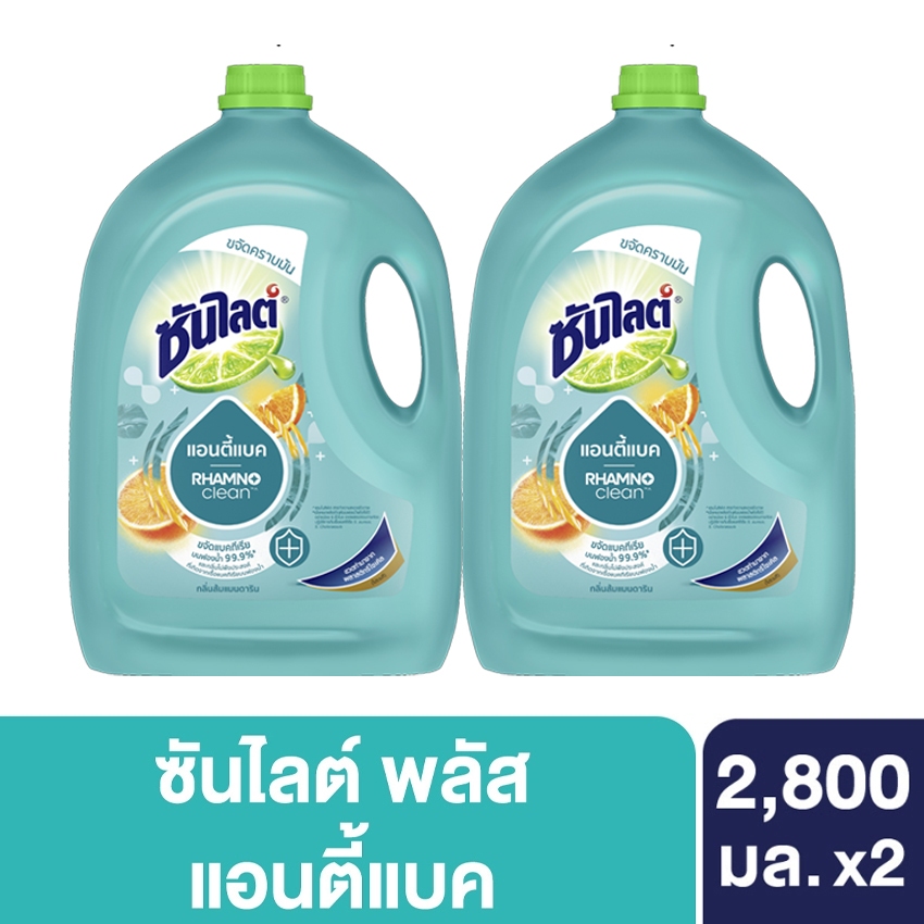 [ทั้งหมด 2 แกลลอน] ซันไลต์ น้ำยาล้างจาน พลัส แอนตี้แบค 2800 มล และ เลมอนเทอร์โบ 3200 มล. SUNLIGHT LEMON 2800 / 3200 ML.