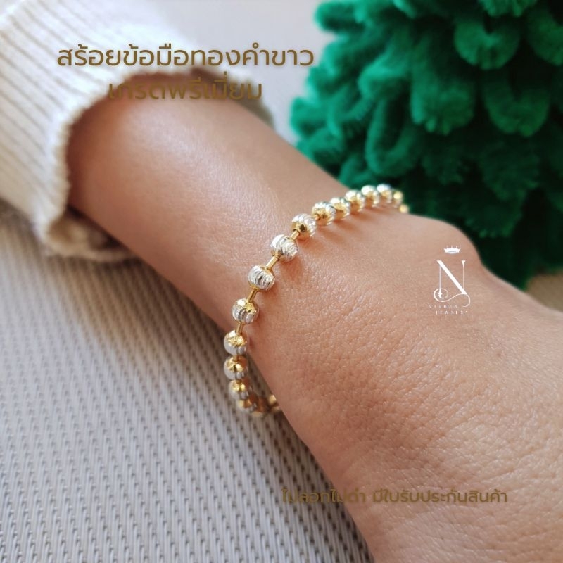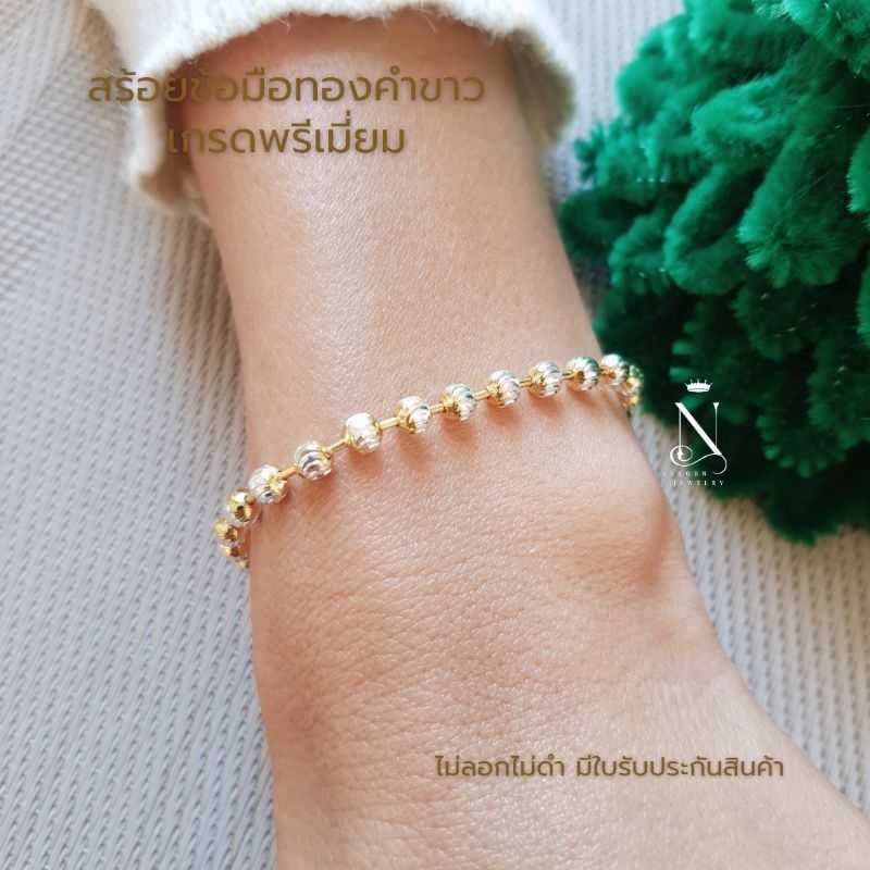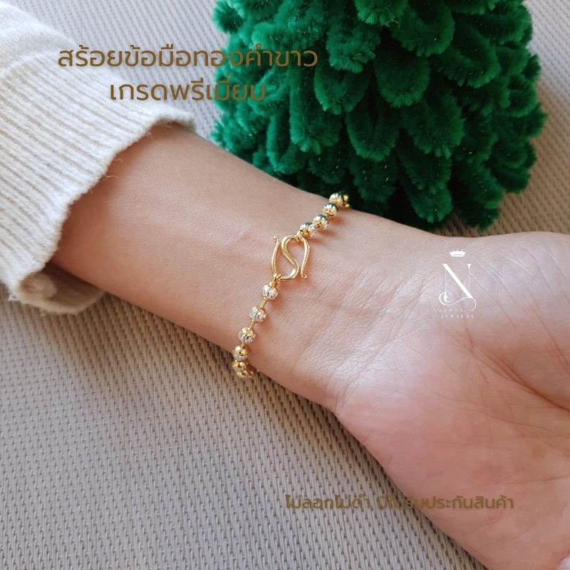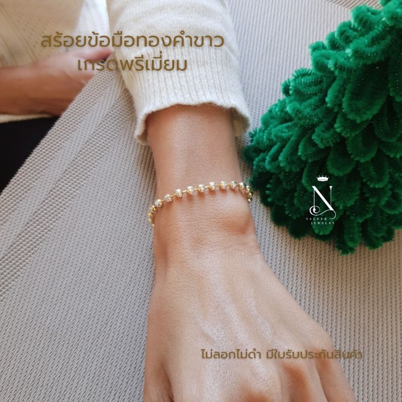 สร้อยข้อมือ ทองคำขาว (หูห่วง) เม็ด4มิล เทียบแท้ ไม่ลอกไม่ดำ ใส่อาบน้ำได้ มีใบรับประกัน บริการหลังการขาย