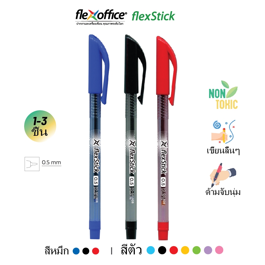 FlexOffice FlexStick 0.5 - 1แท่ง/3แท่ง - ปากกาลูกลื่น หมึกสี น้ำเงิน/แดง/ดำ - FO-GELB08