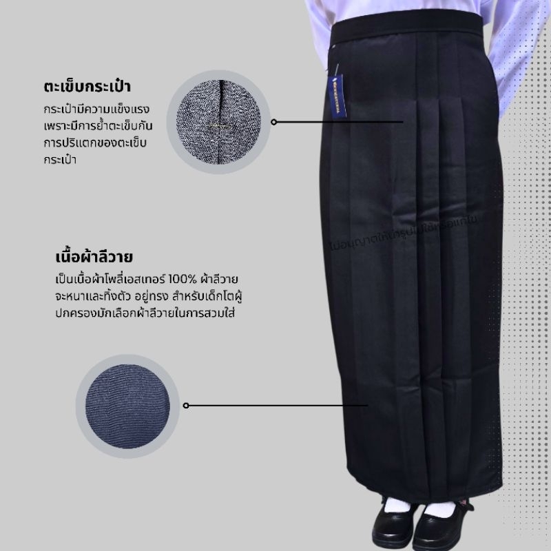 กระโปรงนักเรียนมุสลิม สีดำ กระโปรงนักเรียนยาว 6 จีบ ผ้าลีวาย ชุดนักเรียนมุสลิม