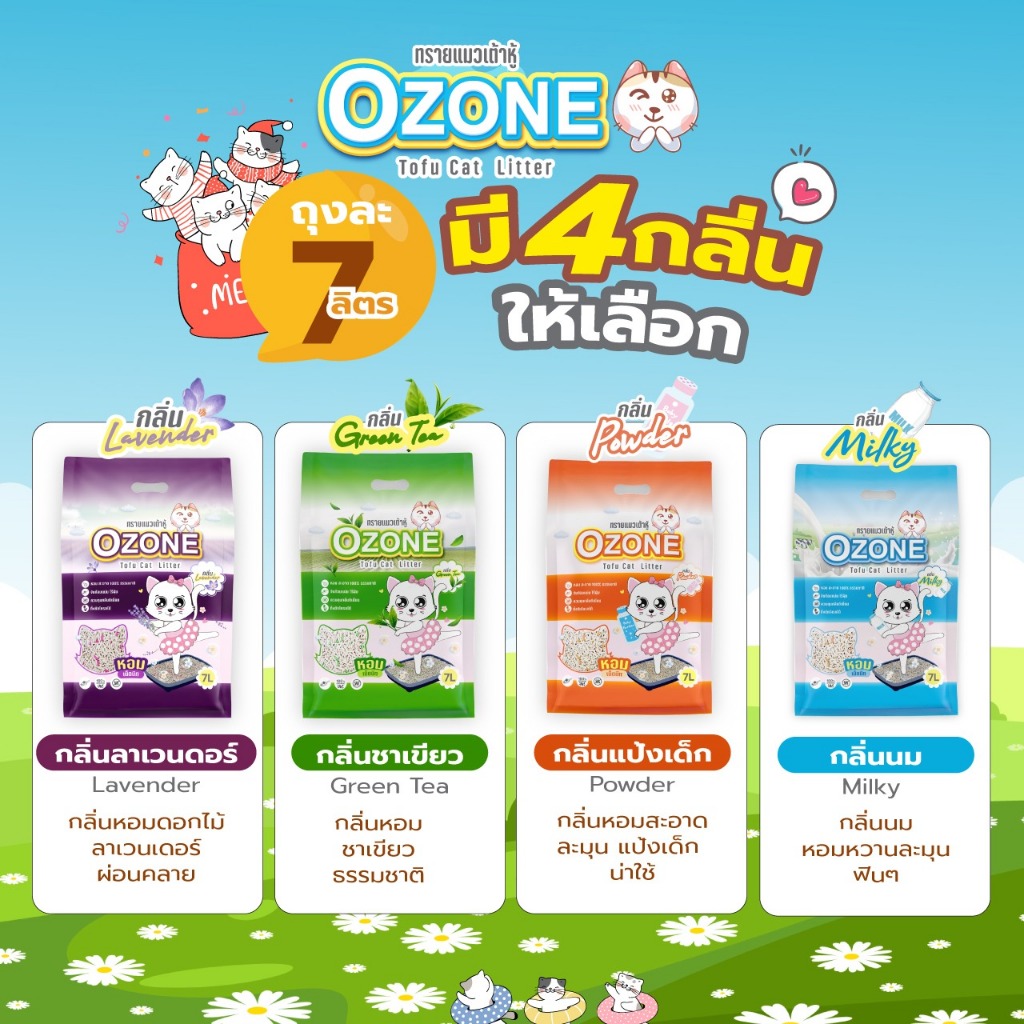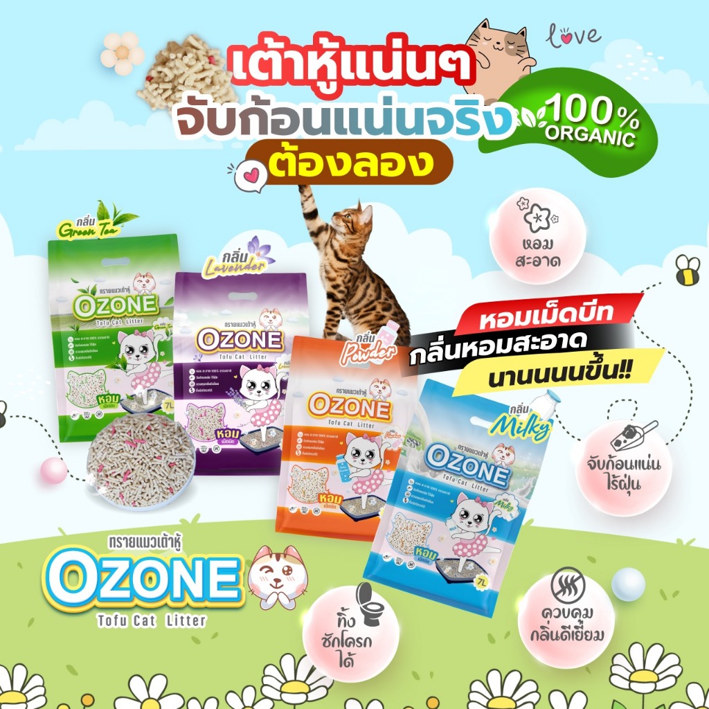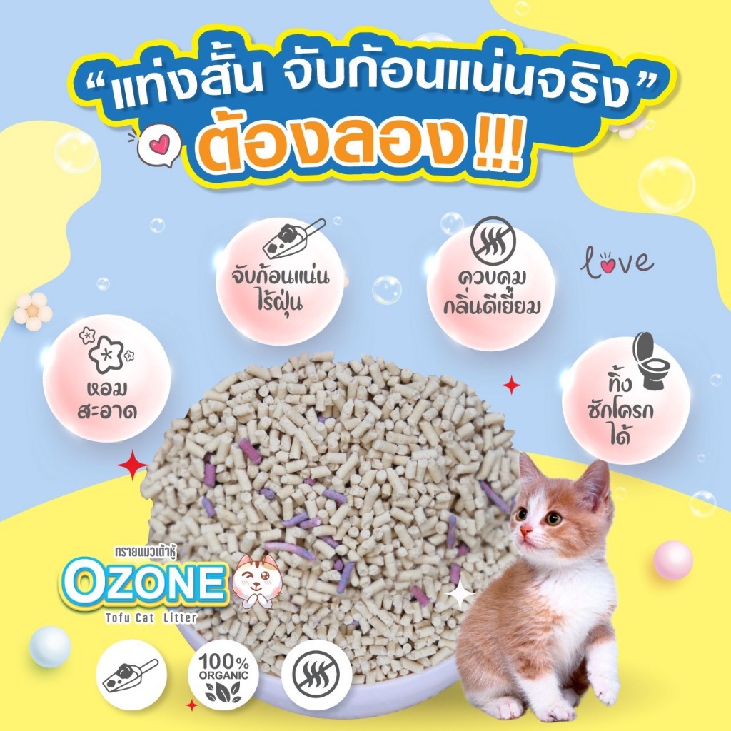 Ozone [โอโซน] ทรายแมวเต้าหู้ ขนาด 7 ลิตร สูตรเพิ่มเม็ดบีท จับตัวดี คุมกลิ่น หอมสะอาด