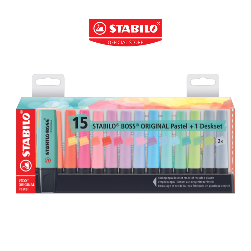 STABILO Boss Original Pastel ปากกาไฮไลท์สีพาสเทล ปากกาเน้นข้อความ แพ็ค 15 สี (พาสเทล)