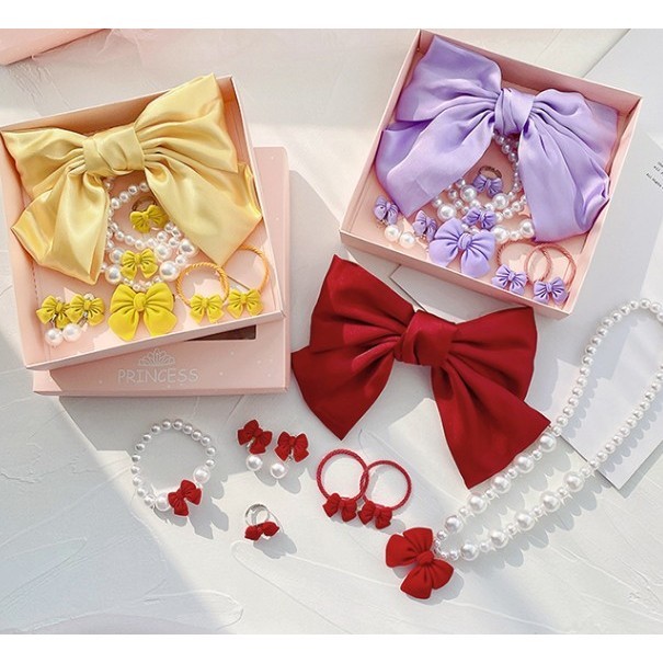 ชุดเครื่องประดับ สร้อยคอ ต่างหู ไข่มุก ลายโบว์ สำหรับเด็กผู้หญิง