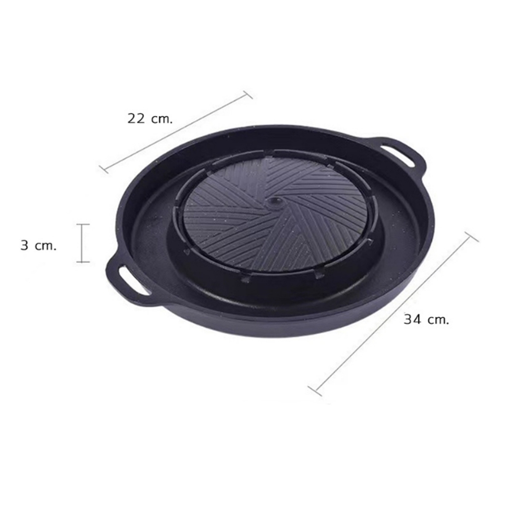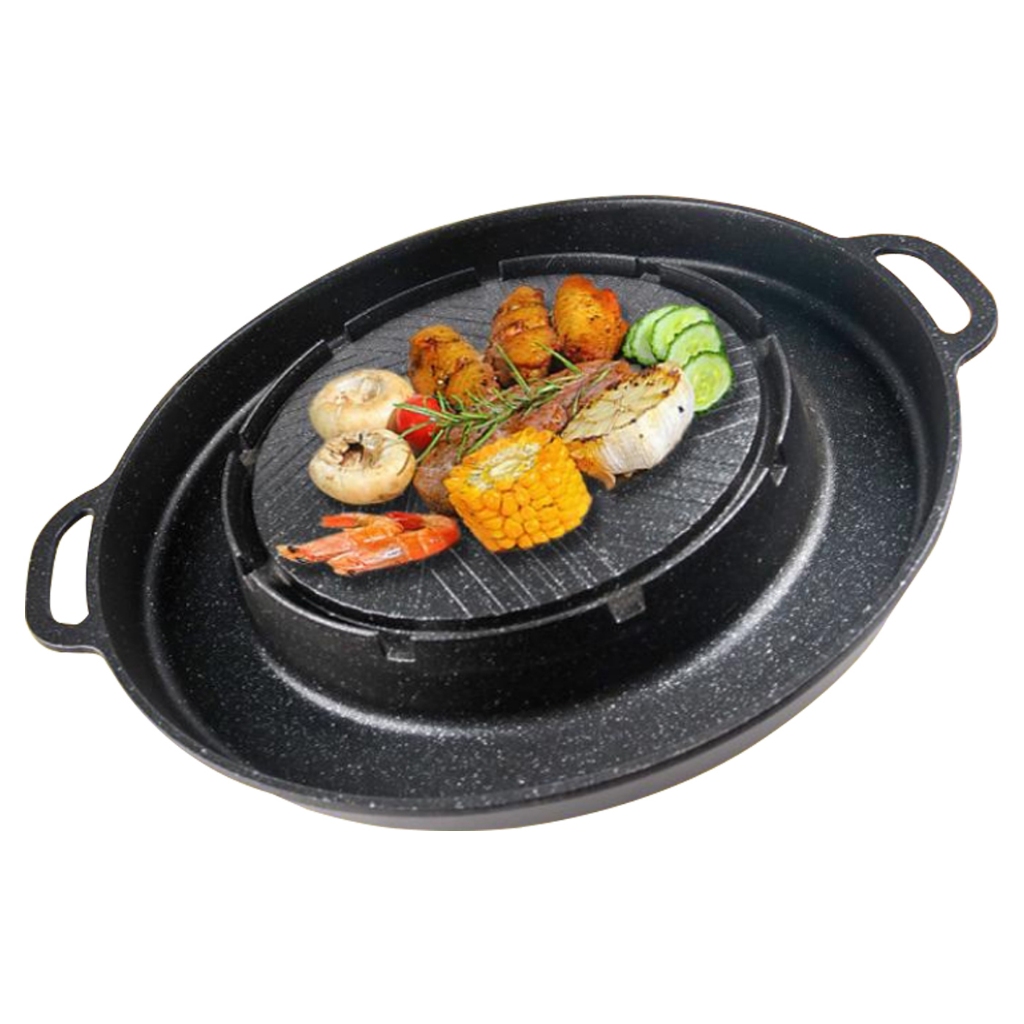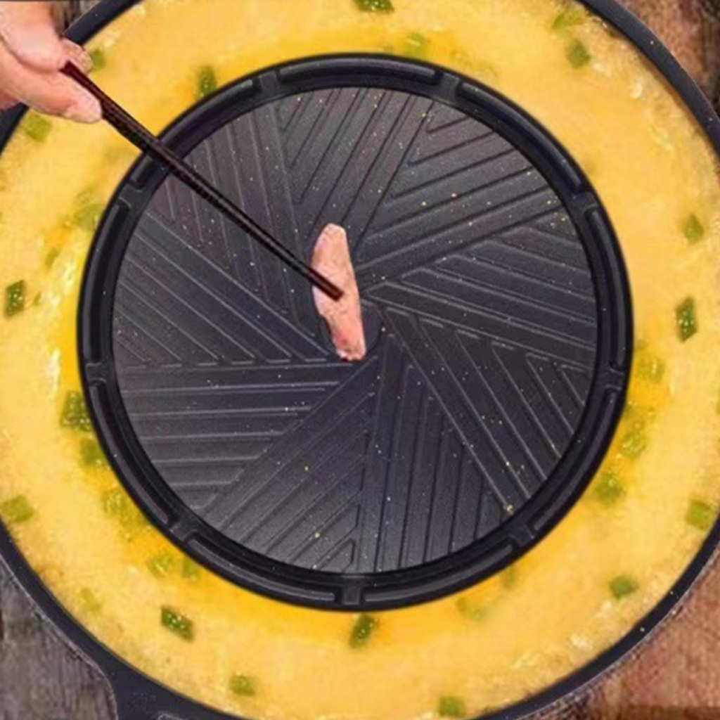 UNITBOMB 2in1 กระทะทรงกลม + ช่องน้ำซุป บาร์บีคิว ใช้ได้กับเตาแก็ส และเตาถ่านไม่ติดกระทะ เคลือบเทปล่อน