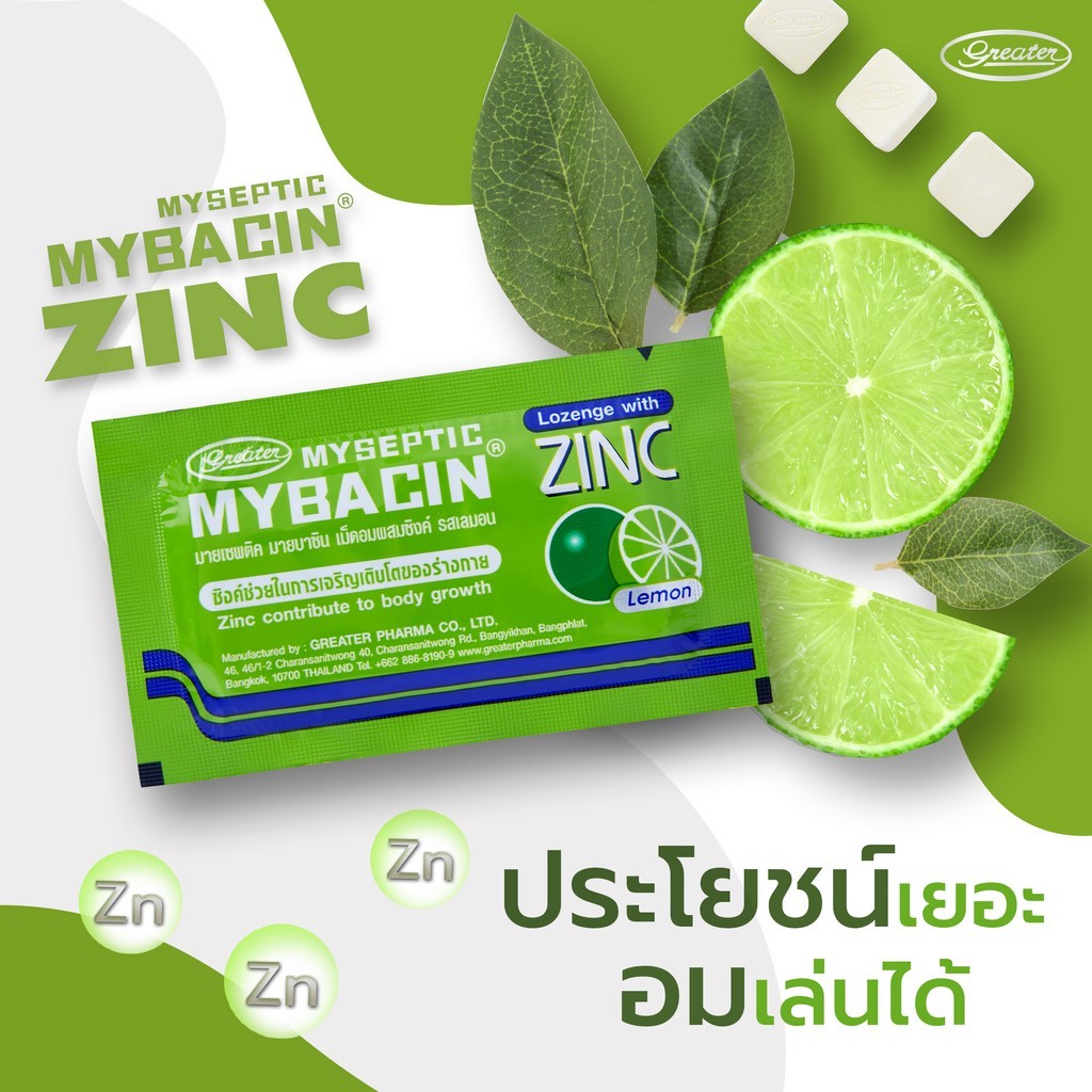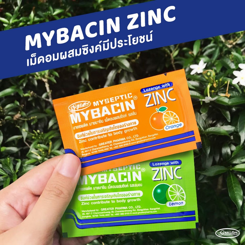 เม็ดอมซิงค์ รสส้ม10ซอง และ รสเลม่อน10ซอง (รวม20ซอง) Mybacin