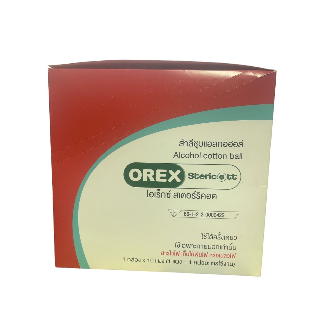 OREX Stericott สำลีก้อน ชุบแอลกอฮอล์ 70% Alcohol cotton swab 8 ก้อน [10 แผง/1 กล่อง] EE 7104