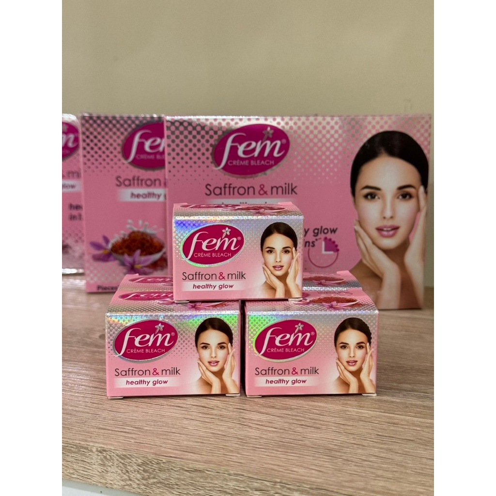 (ซื้อในไลฟ์ 24 บาท) Fem กล่องชมพู ที่ย้อมคิ้ว ครีมย้อมคิ้ว สีคิ้ว Fairness Naturals Saffron Skin Bleach อ่อนโยน 8g