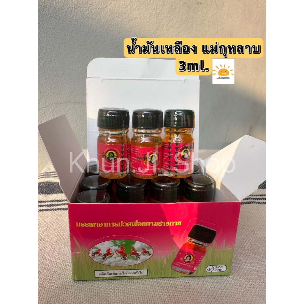 แม่กุหลาบ LIVEลด30% 2ทุ่ม!! น้ำมันเหลืองสูตรไพล/น้ำมันเขียวเสลดพังพอน/น้ำมันเลียงผา สมุนไพรแม่กุหลาบ ขนาด 20/7/3cc.