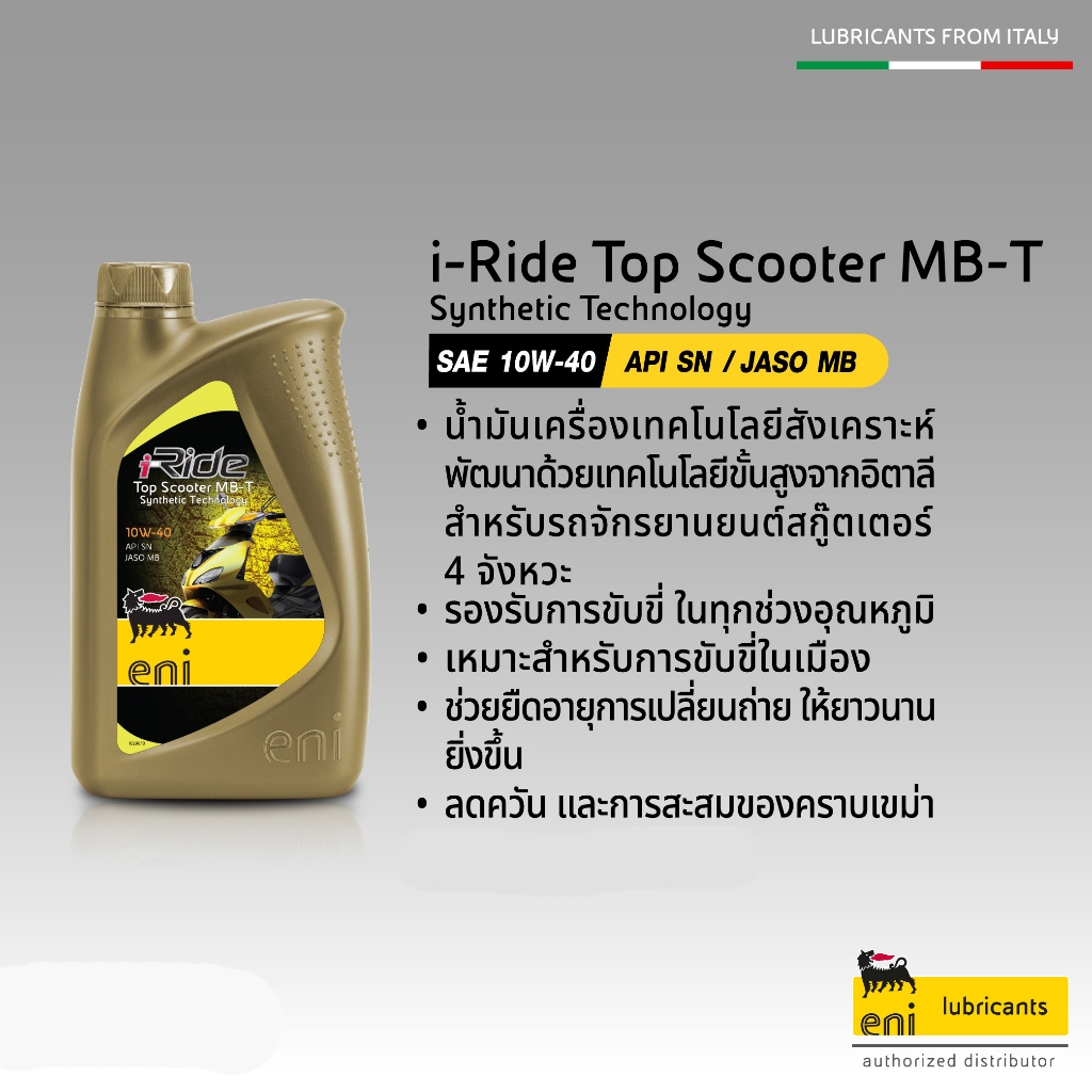 Eni i-RIDE Top Scooter MB-T 10W40 MB น้ำมันเครื่องมอเตอร์ไซค์ ขนาด 1 ลิตร เอนิ