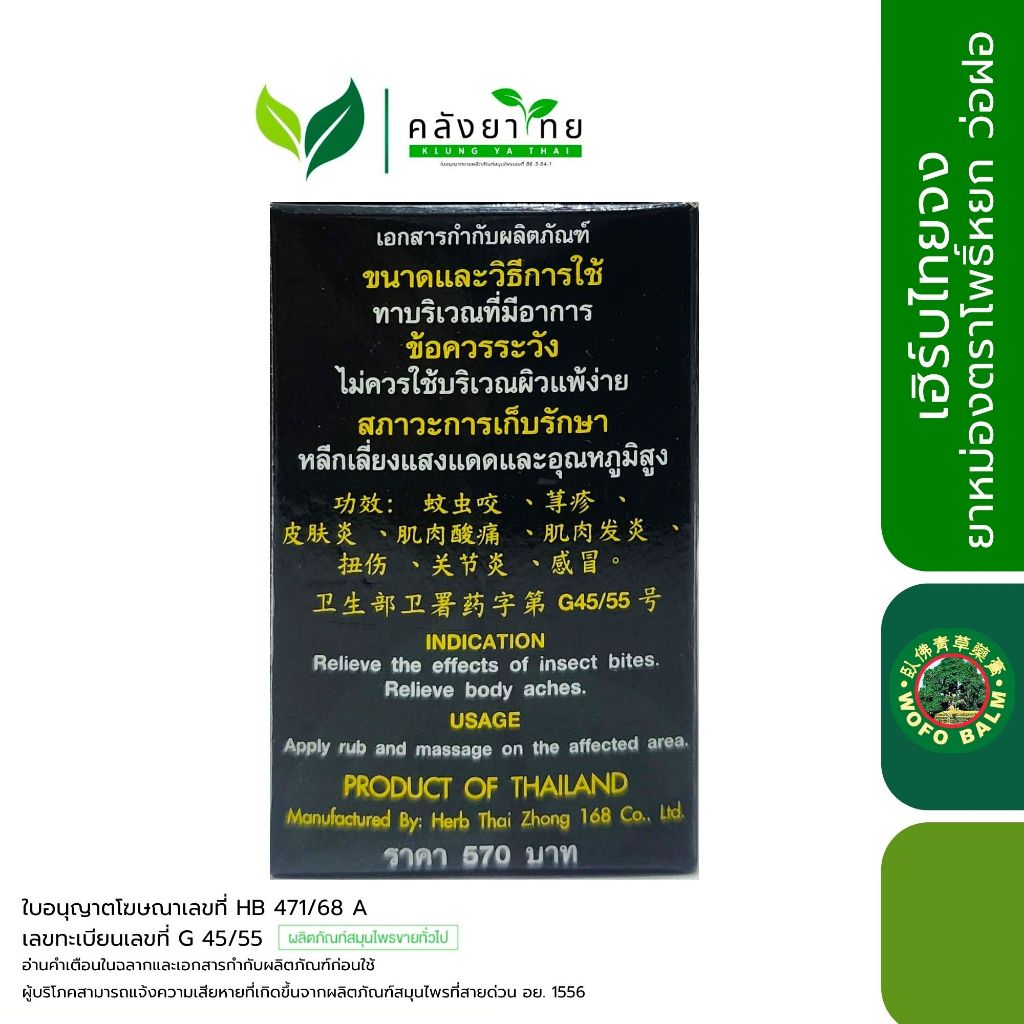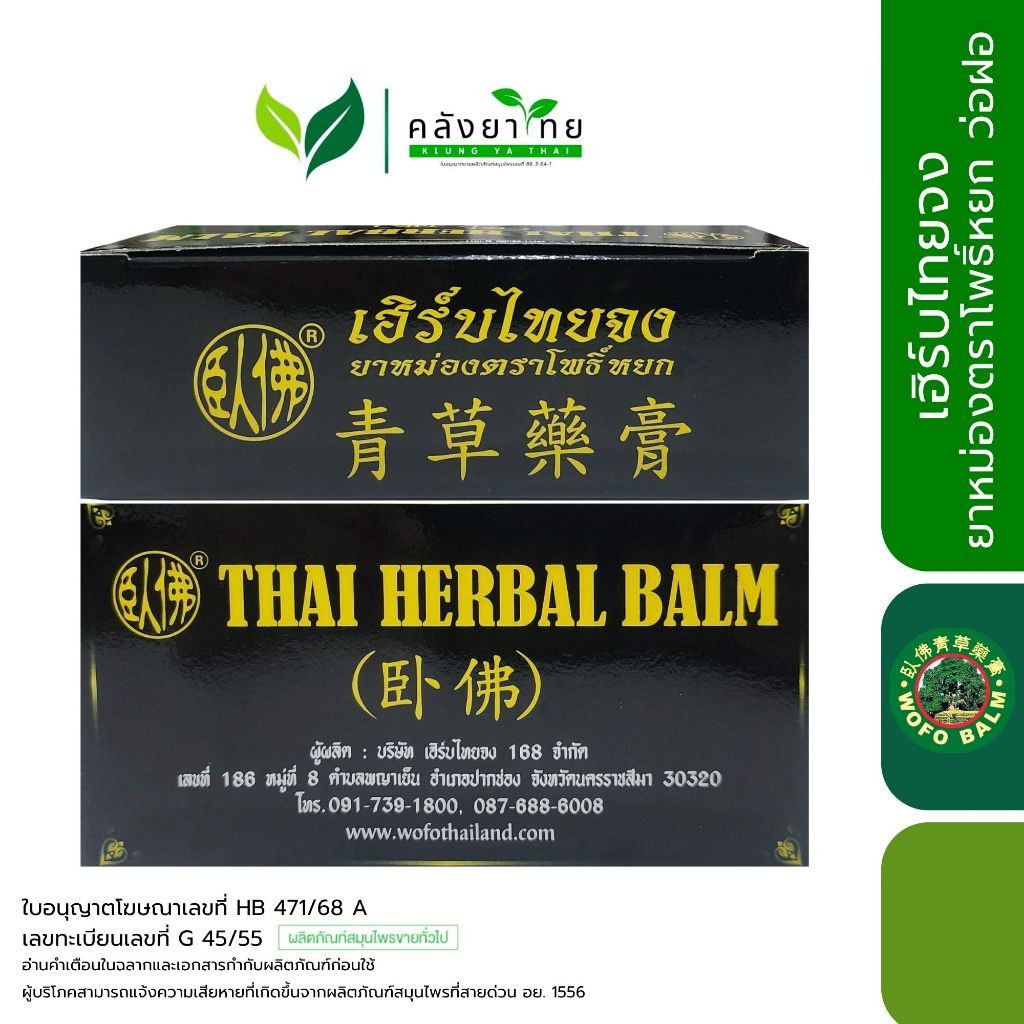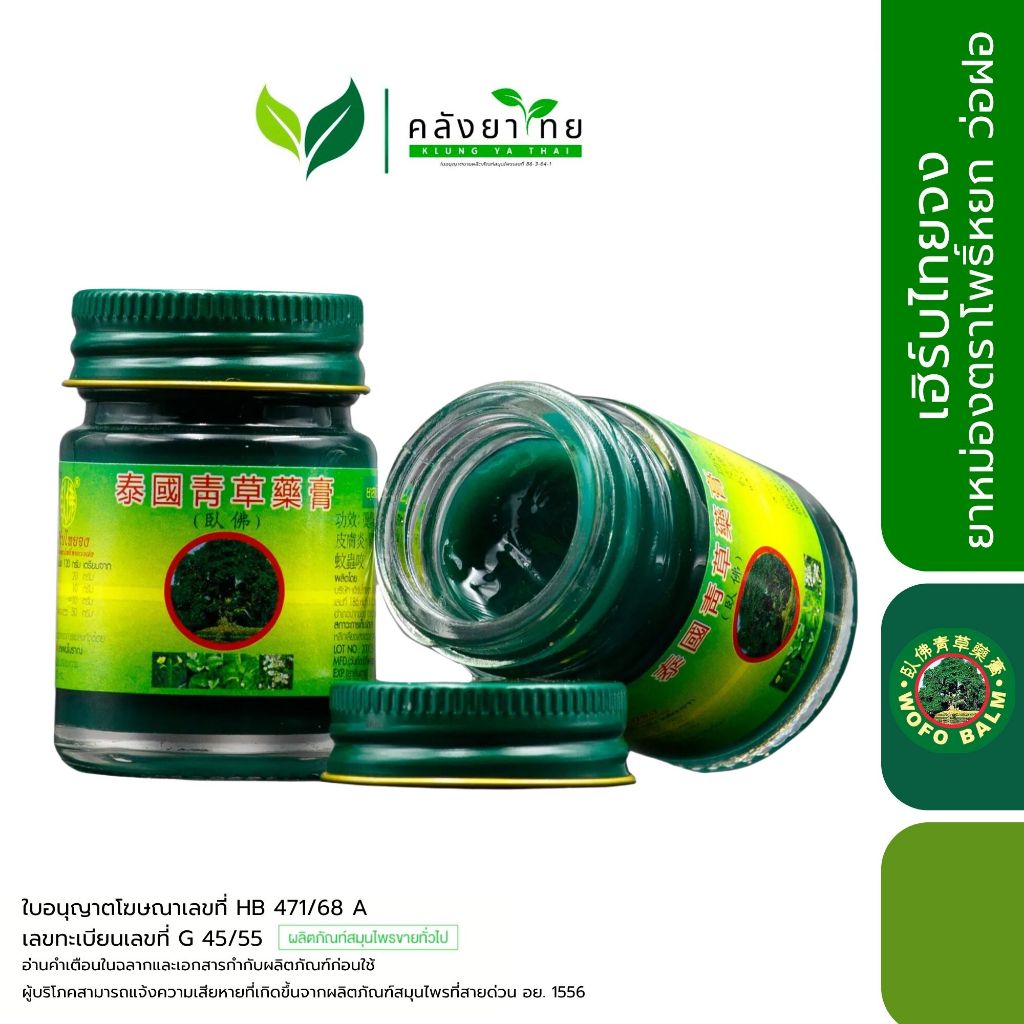 [ขวด] Wofo ยาหม่องสมุนไพรไทย เฮิร์บไทยจง ยาหม่องตราโพธิ์หยก ว่อฝอ ขนาด 20/50 กรัม