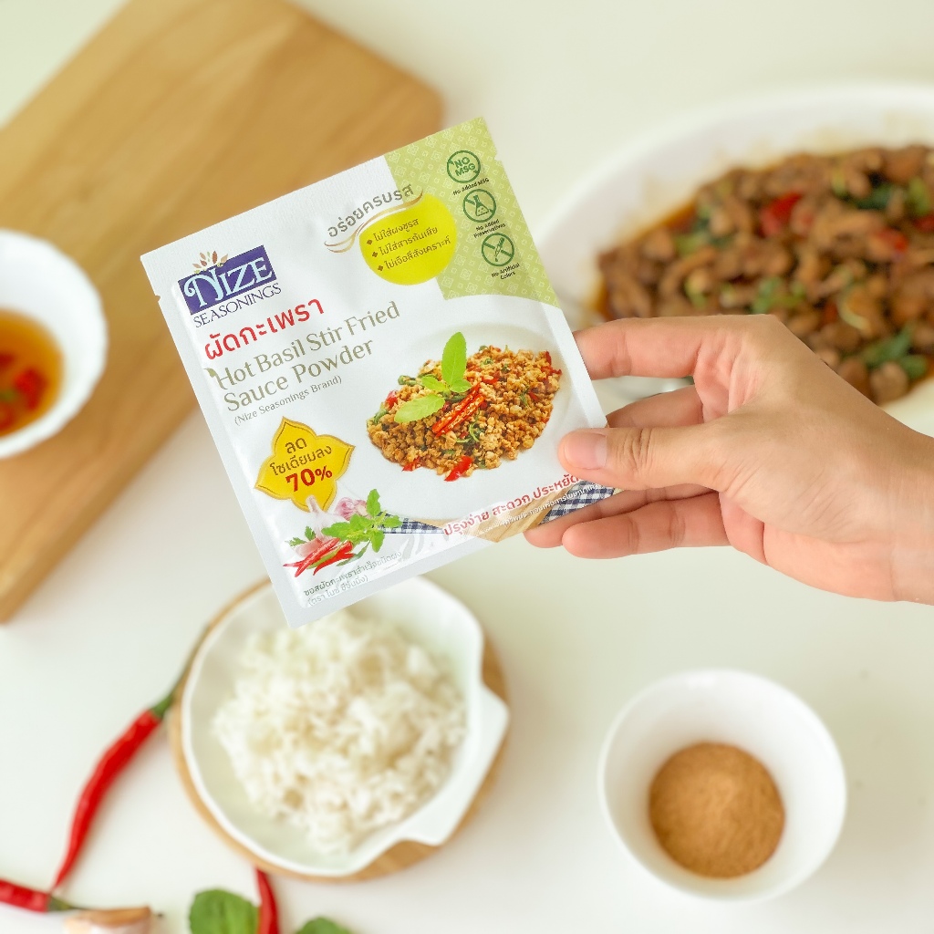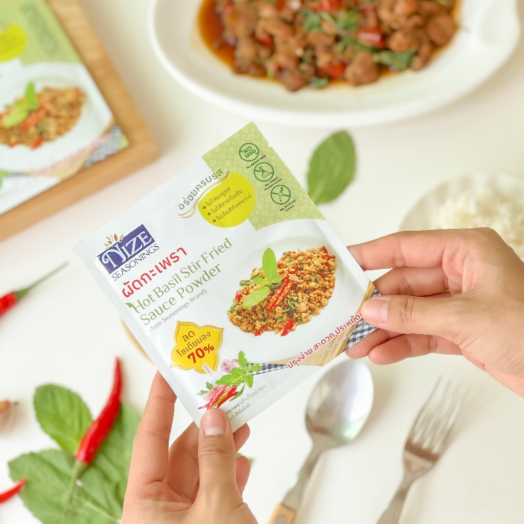 NIZE ผงไนซ ผงปรุงรสคลีน สูตรผัดกระเพรา ลดโซเดียม ไม่ใส่ผงชูรส แพ็ค 2 ซอง ( 2NZ_042 )