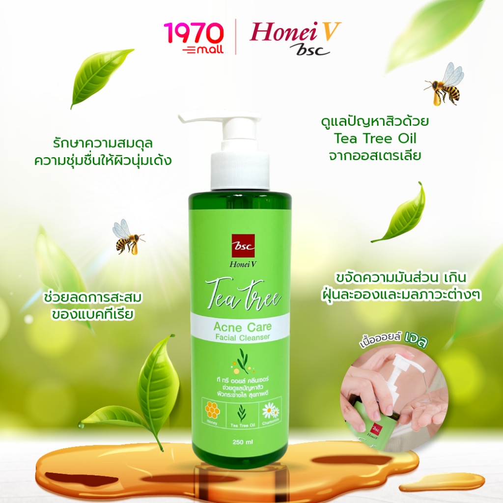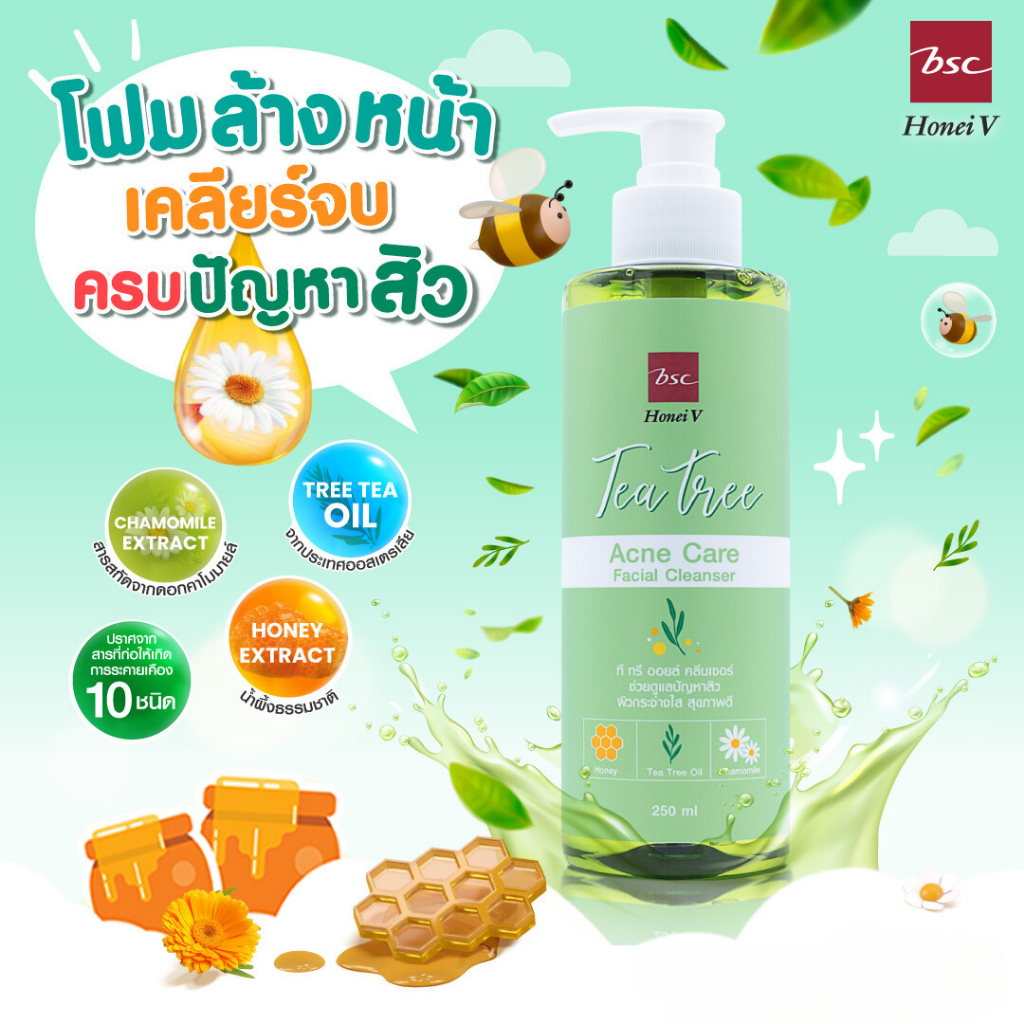 [แพ็ก 2 ชิ้น] HONEI V BSC TEA TREE ACNE CARE เจลล้างหน้าสำหรับผิวเป็นสิวง่าย 250ml. สะอาดล้ำลึก อ่อนโยน ควบคุมสิว