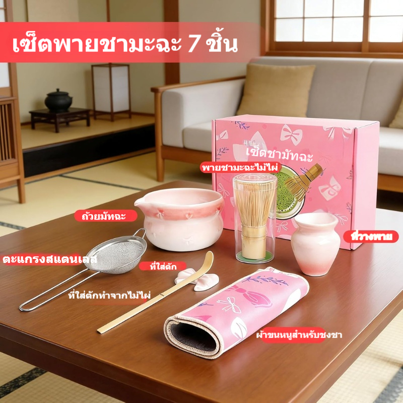 2️⃣4️⃣𝐇 พร้อมส่งจากไทย🚚New ชุดชงมัจฉะสีชมพู (5/7 ชิ้น) ชุดชงมัทฉะ พร้อมที่ตี chasen ญี่ปุ่น matcha bowl ช้อน (chashaku) เซ็ทชงมัทฉะ matcha set กล่องของขวัญ