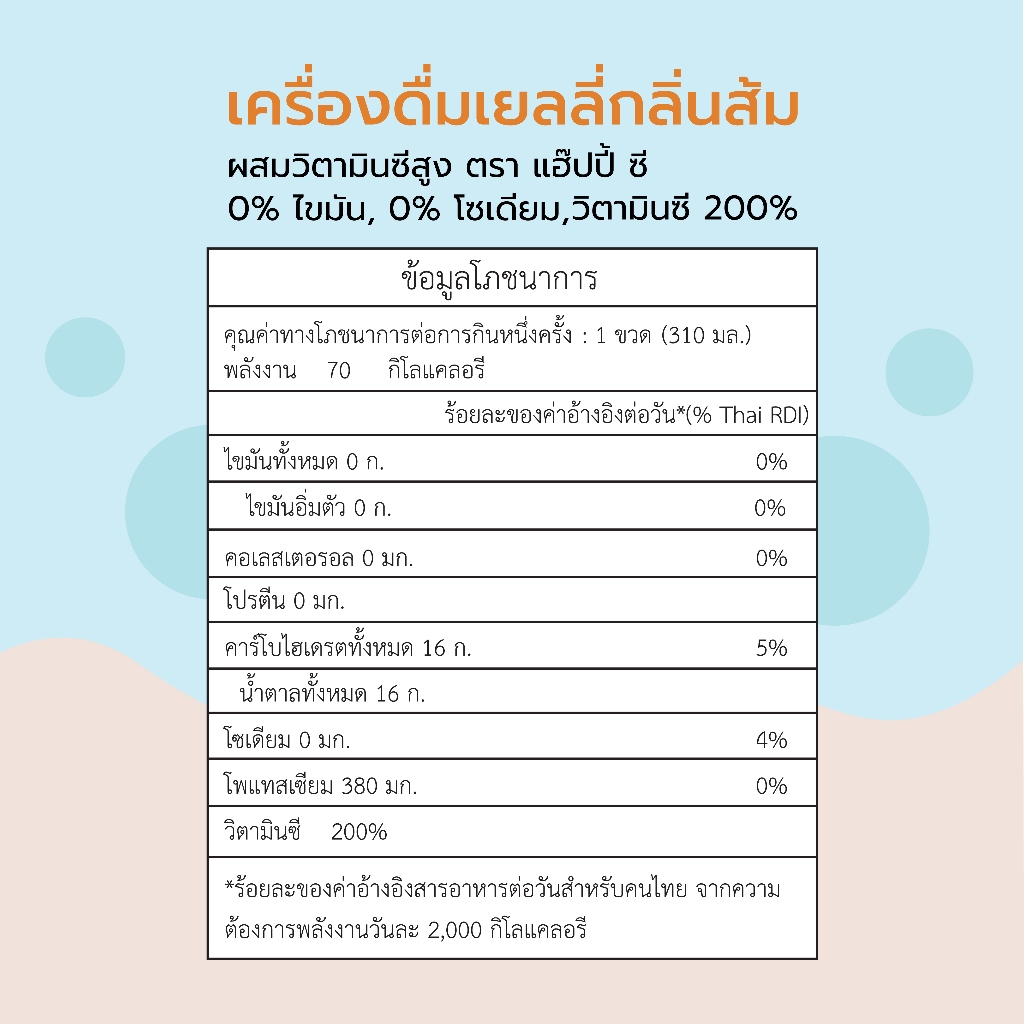 Hapi-C เครื่องดื่มเยลลี่ กลิ่นส้มผสมวิตามินซีสูง ขนาด 310 ML.