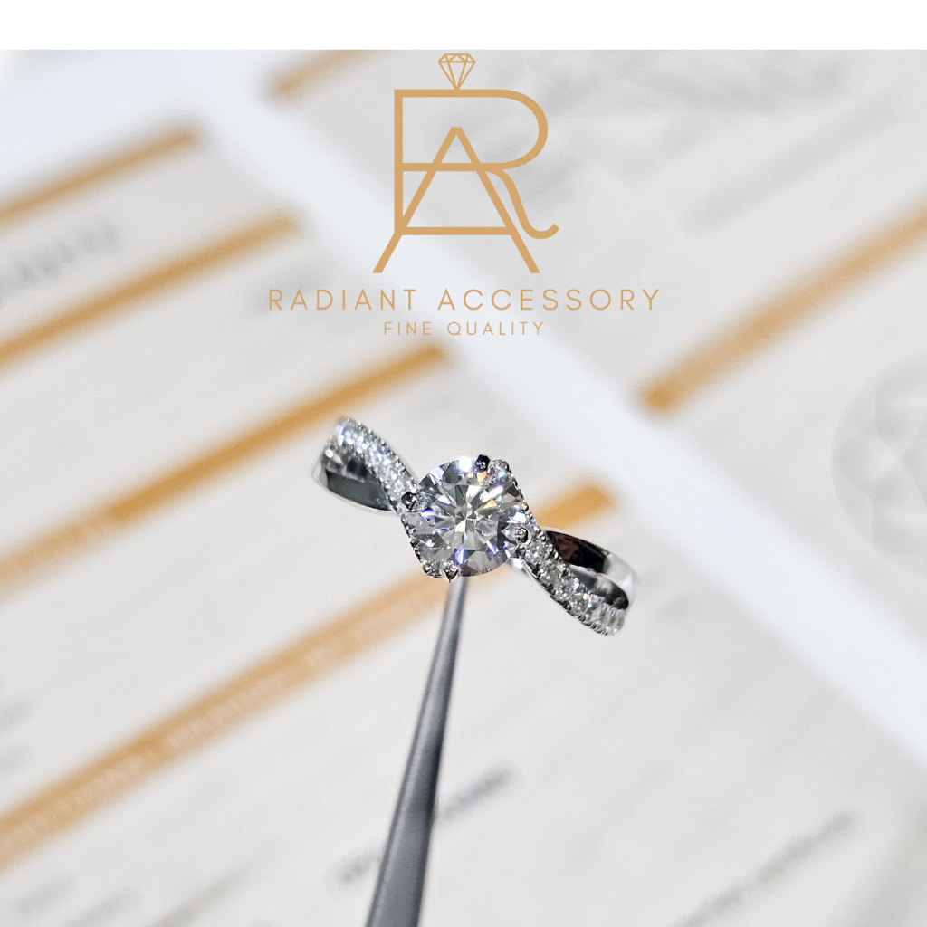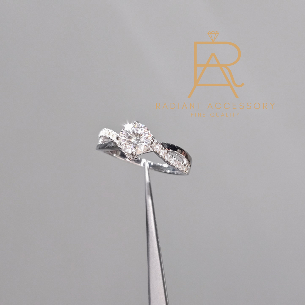 แหวนเงินแท้ ฝังเพชร Moissanite 1กะรัต ก้านไขว้ ชุบทองคำขาว