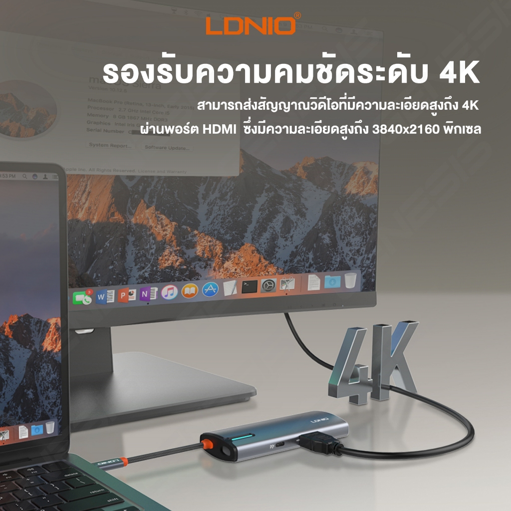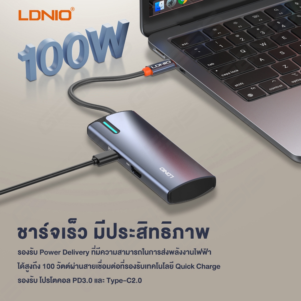 LDNIO ฮับ USB Type-C แปลง Type-C เป็น USB 3.0 HDMI PD100W สำหรับ compatible compatible for Macbook