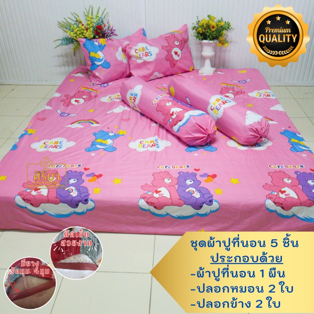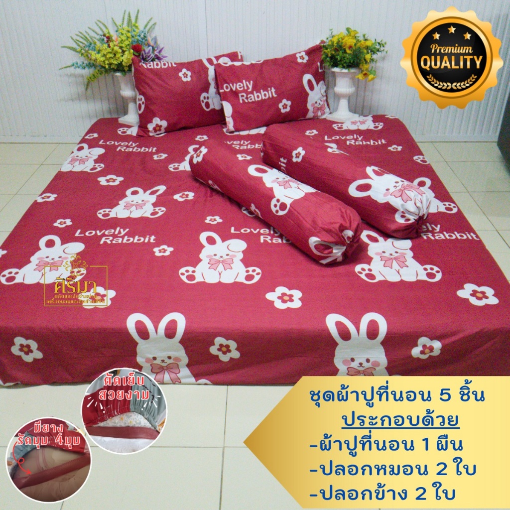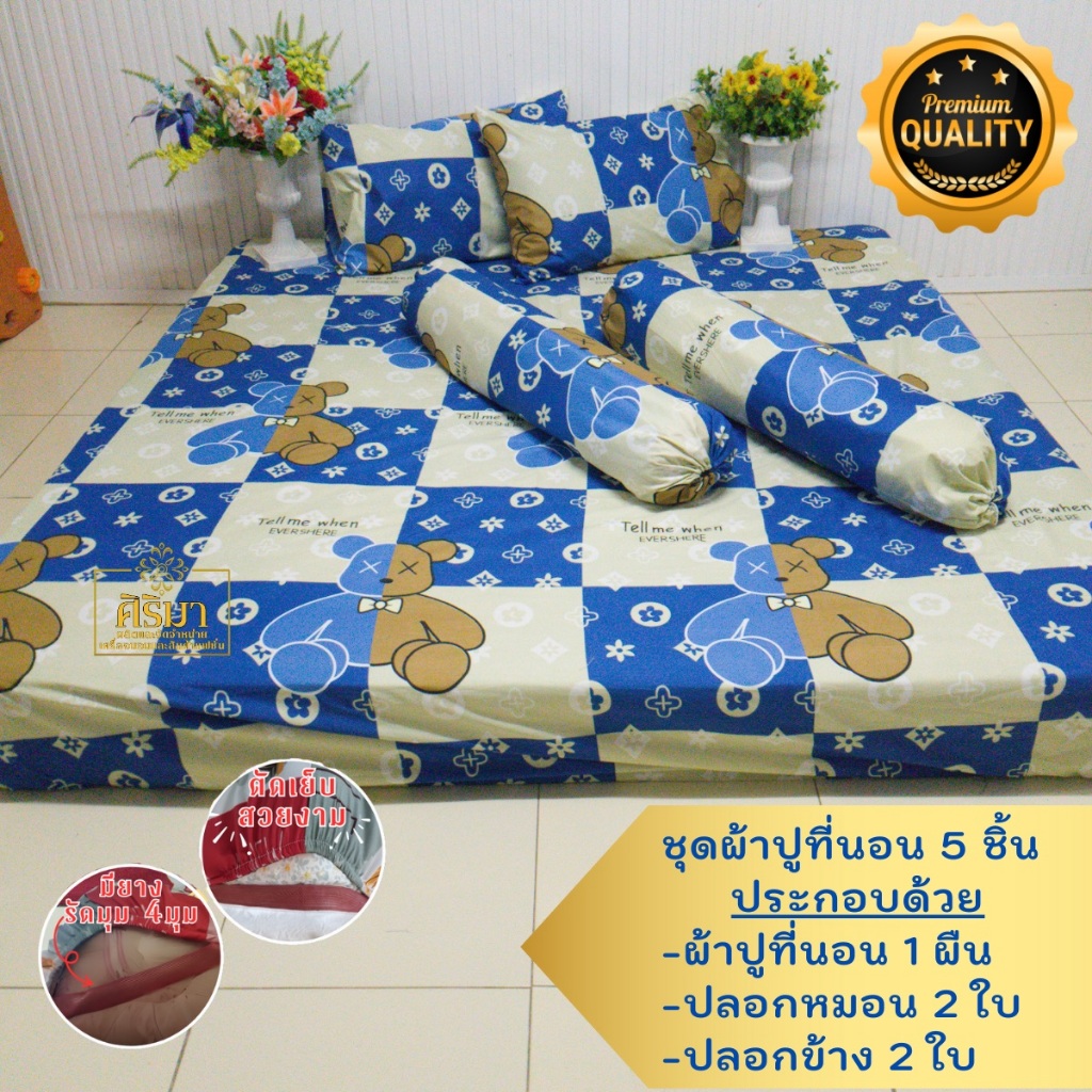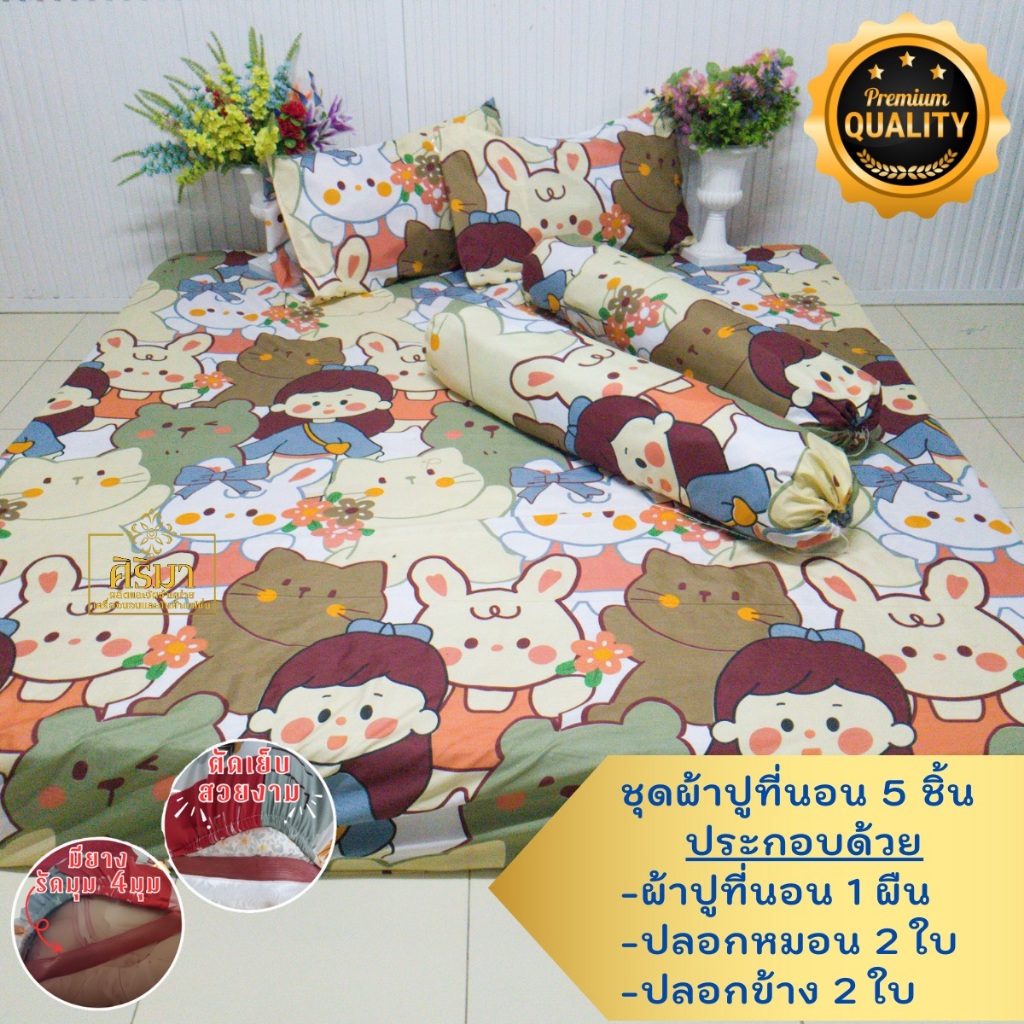 ผ้าปูที่นอน ครบชุด 5 ชิ้น 3.5/5/6 ฟุต มียางรัดมุม 4 มุม เลือกสีเลือกลายตามใจคุณ สีไม่ตก ไม่ขึ้นขน