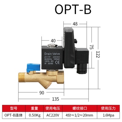 Ac DC แรงดันไฟฟ้าทองเหลืองวาล์วระบายน้ําอิเล็กทรอนิกส์วาล์วประเภทสยามพร้อมตัวจับเวลา OPT