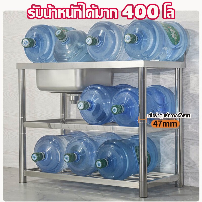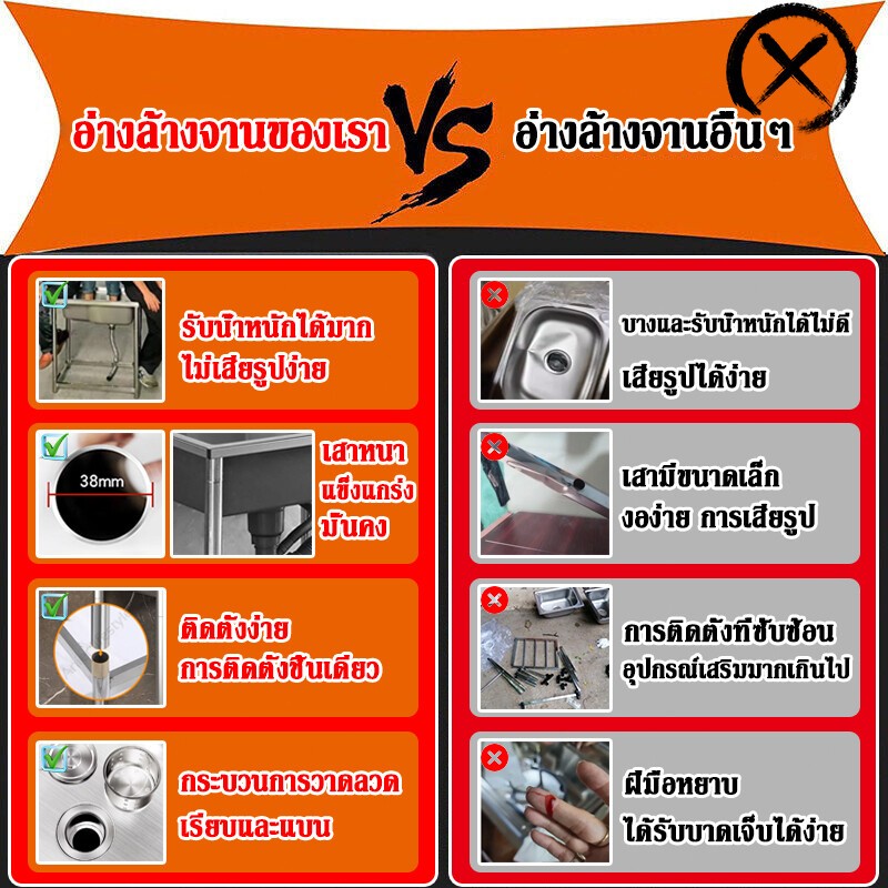 【แถมก๊อกน้ำฟรี สแตนเลสหนา】ซิ้งค์ล้างจาน อ่างล้างจาน สแตนเลส 3 ชั้น พร้อมขาและชั้นวางsink ท่อหนาขึ้น ไม่เขย่า ไม่เสียรูป
