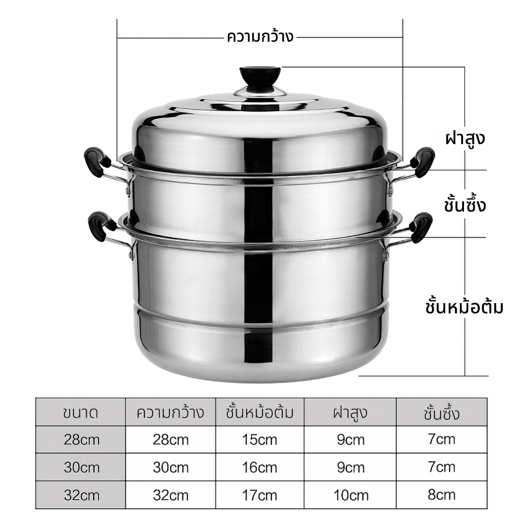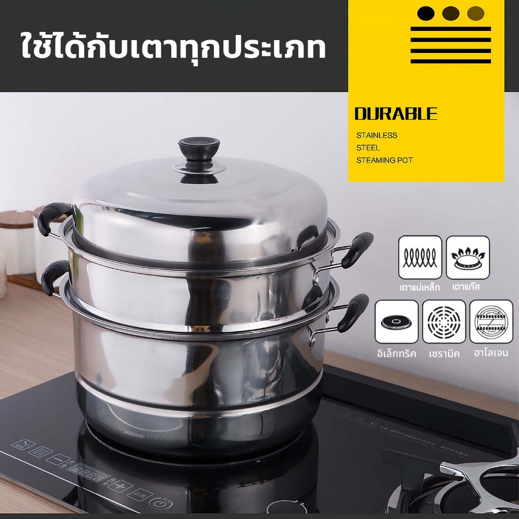 หม้อนึ่งสแตนเลส 2/3ชั้น ขนาด 26CM/28CM/30CM/32CM/34CM ใช้กับเตาแม่เหล็กไฟฟ้าได้