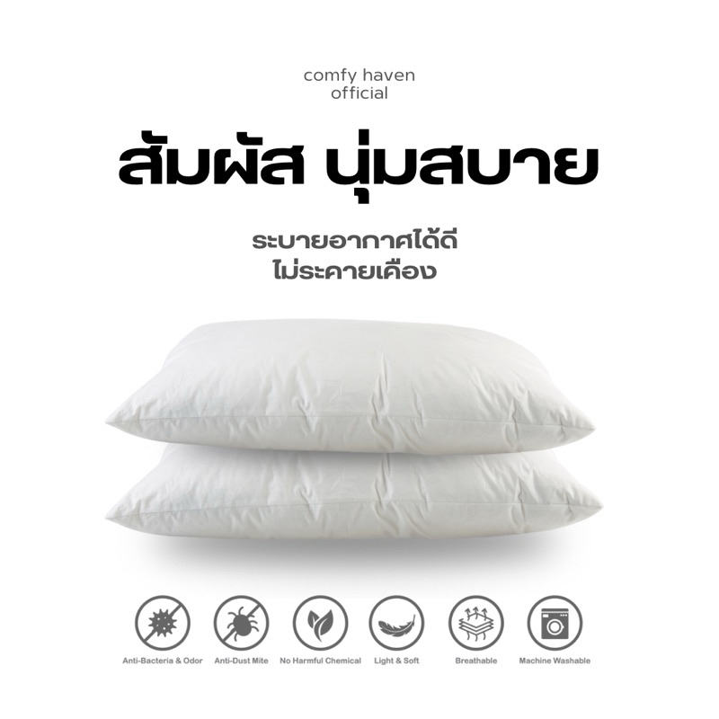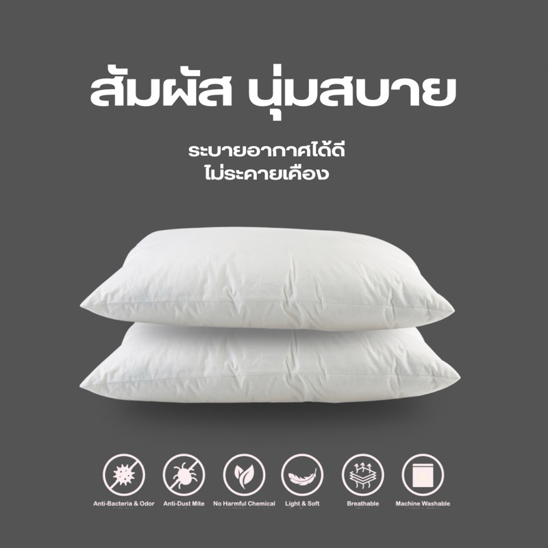 พร้อมส่ง ✅ หมอนเกรดโรงแรม หมอนหนุน หมอนข้างใยสังเคราะห์ นุ่มสบาย สีขาว