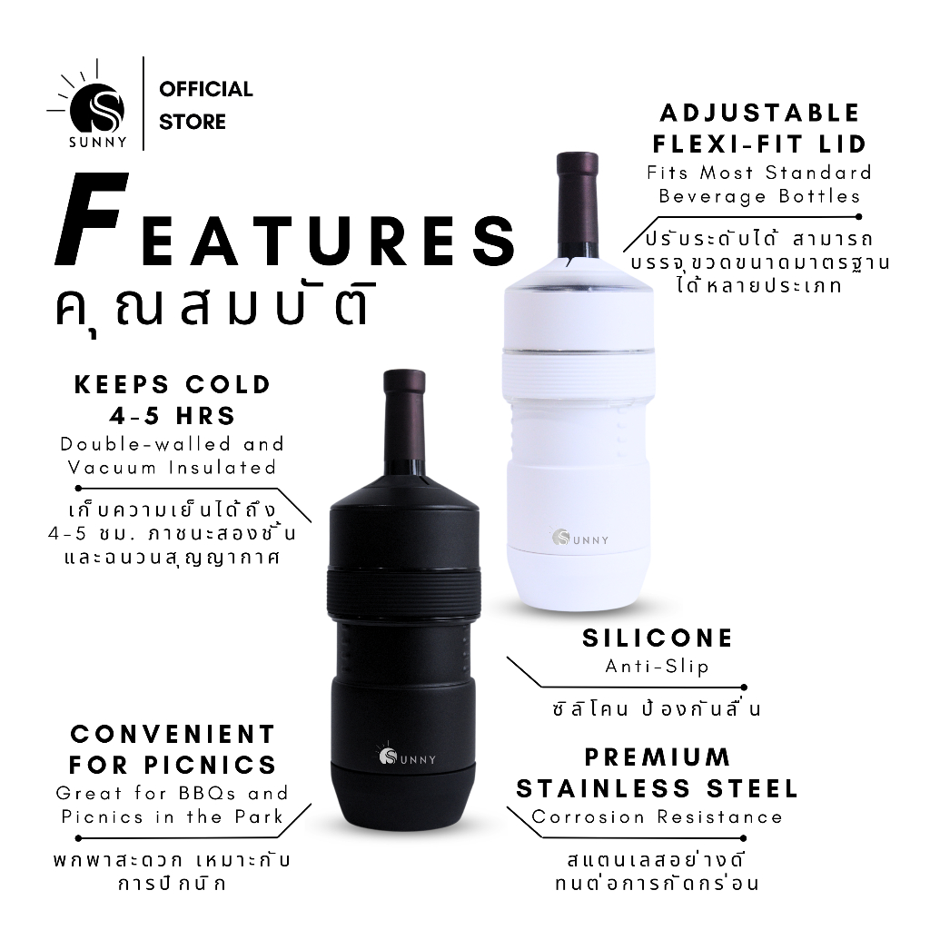 SUNNY Wine Chiller [สีขาว] อุปกรณ์รักษาความเย็นของเครื่องดื่ม ไวน์ เบียร์ นาน 4-5 ชม. โดยไม่ต้องใช้น้ำแข็ง และไฟฟ้า
